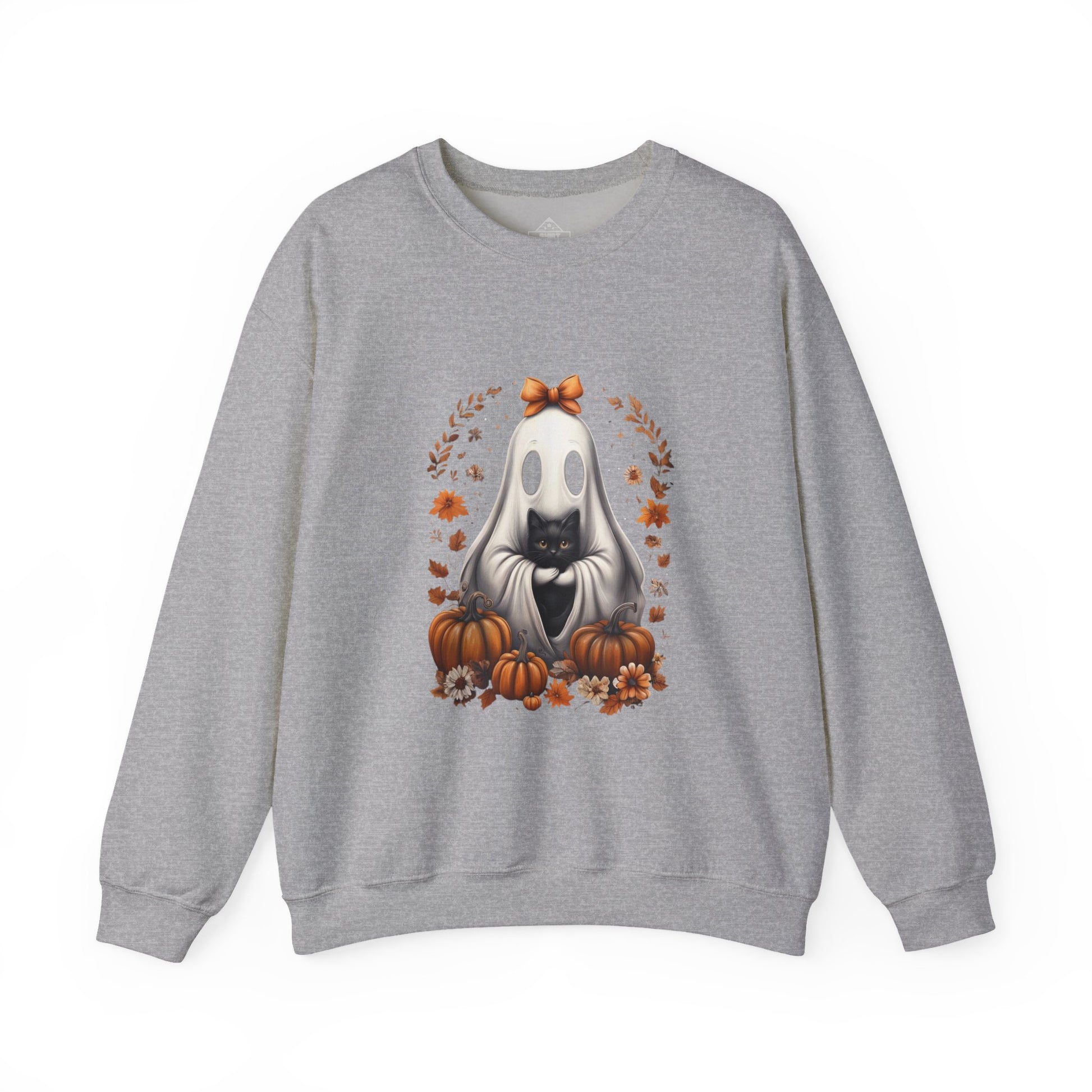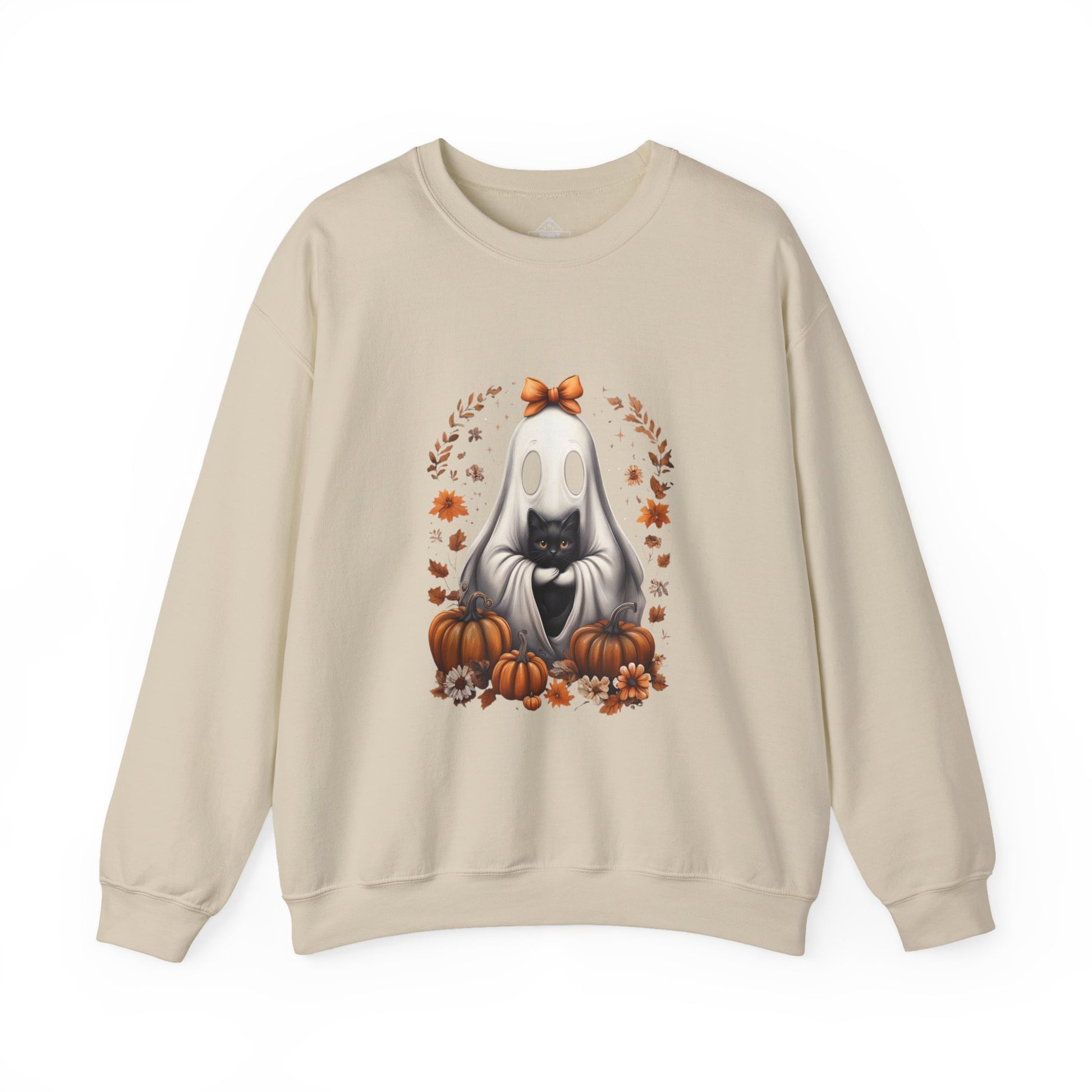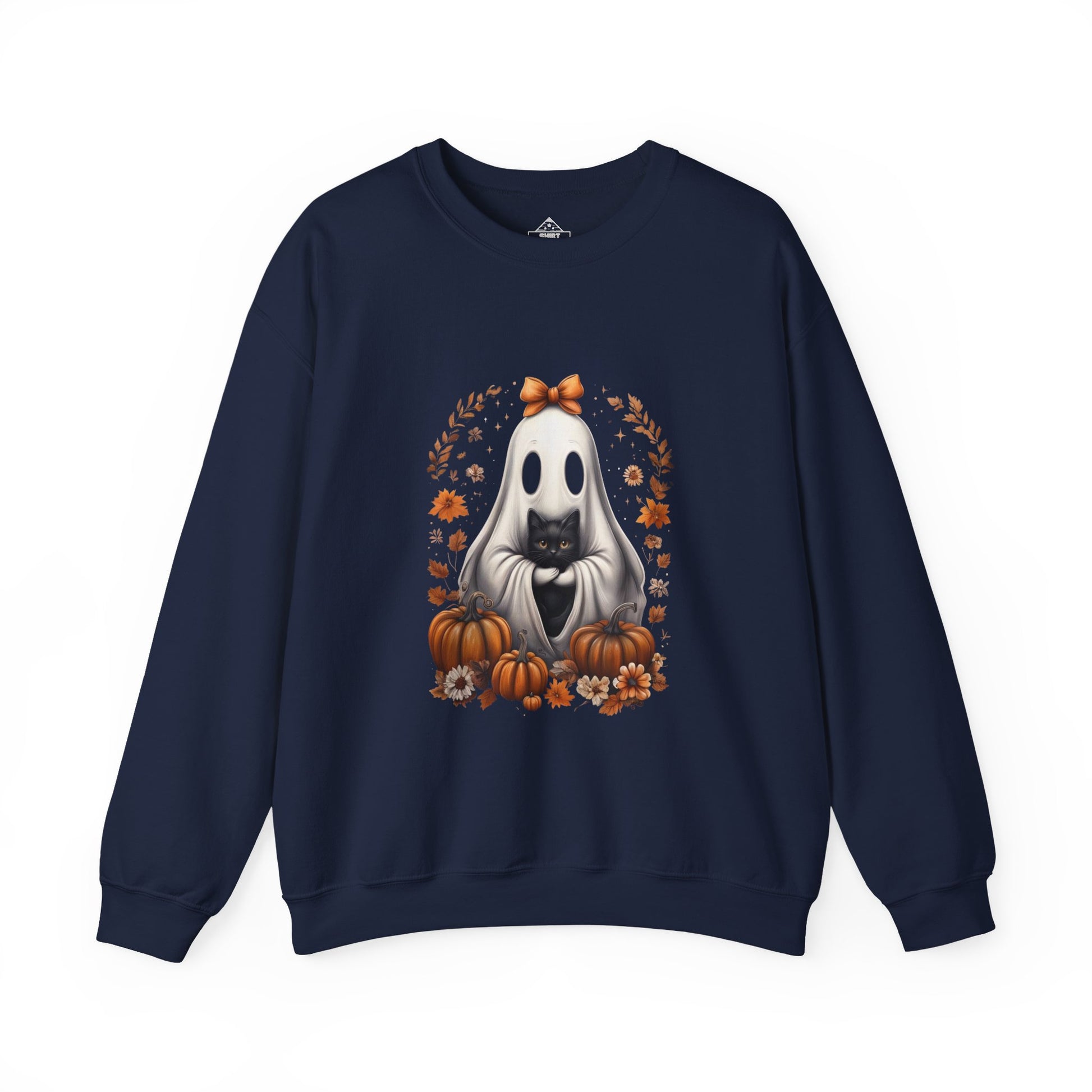 Cute Ghost and Black Cat Halloween T-Shirt | Cozy Fall Pumpkin Shirt | Spooky Season Aesthetic Apparel Gift for Halloween Lovers