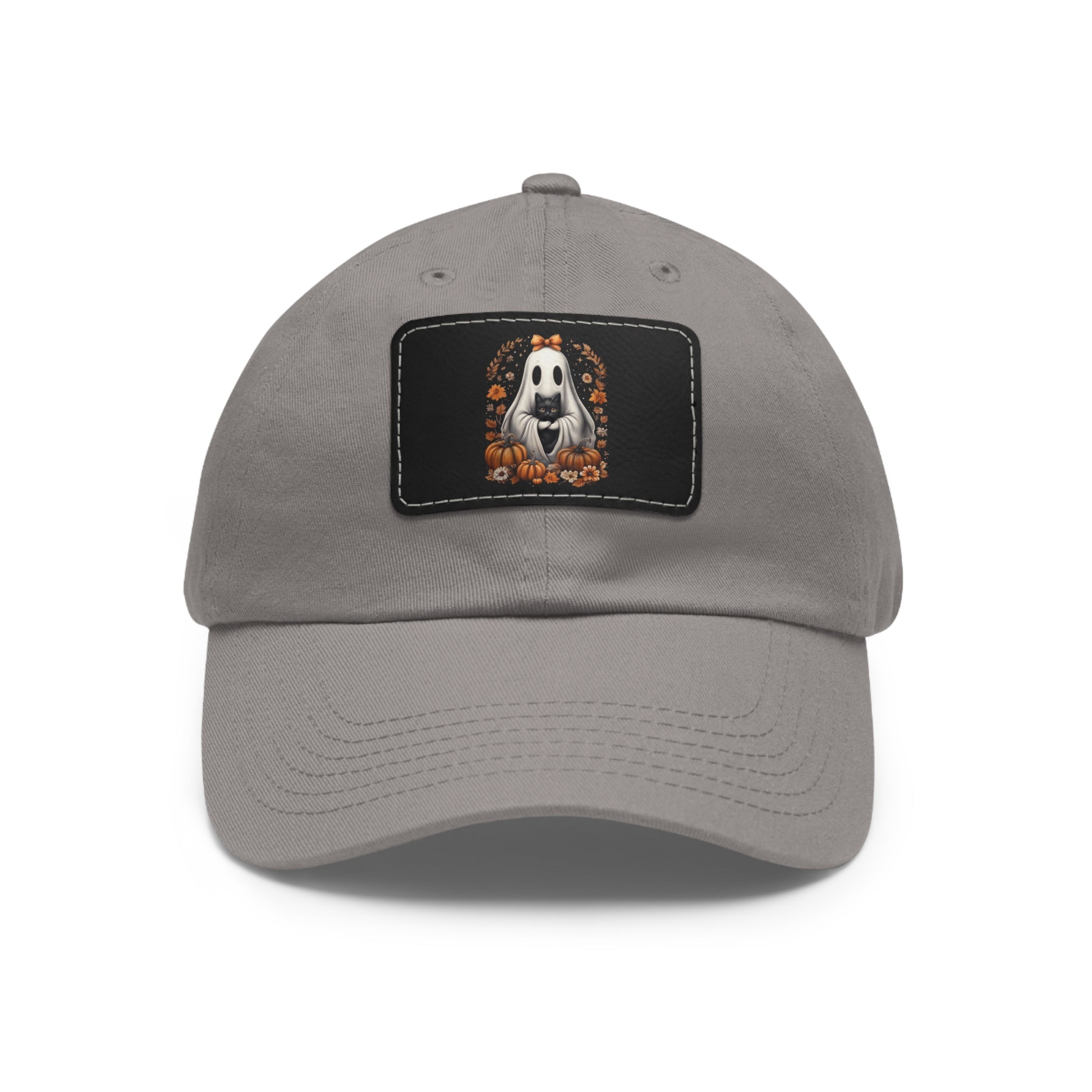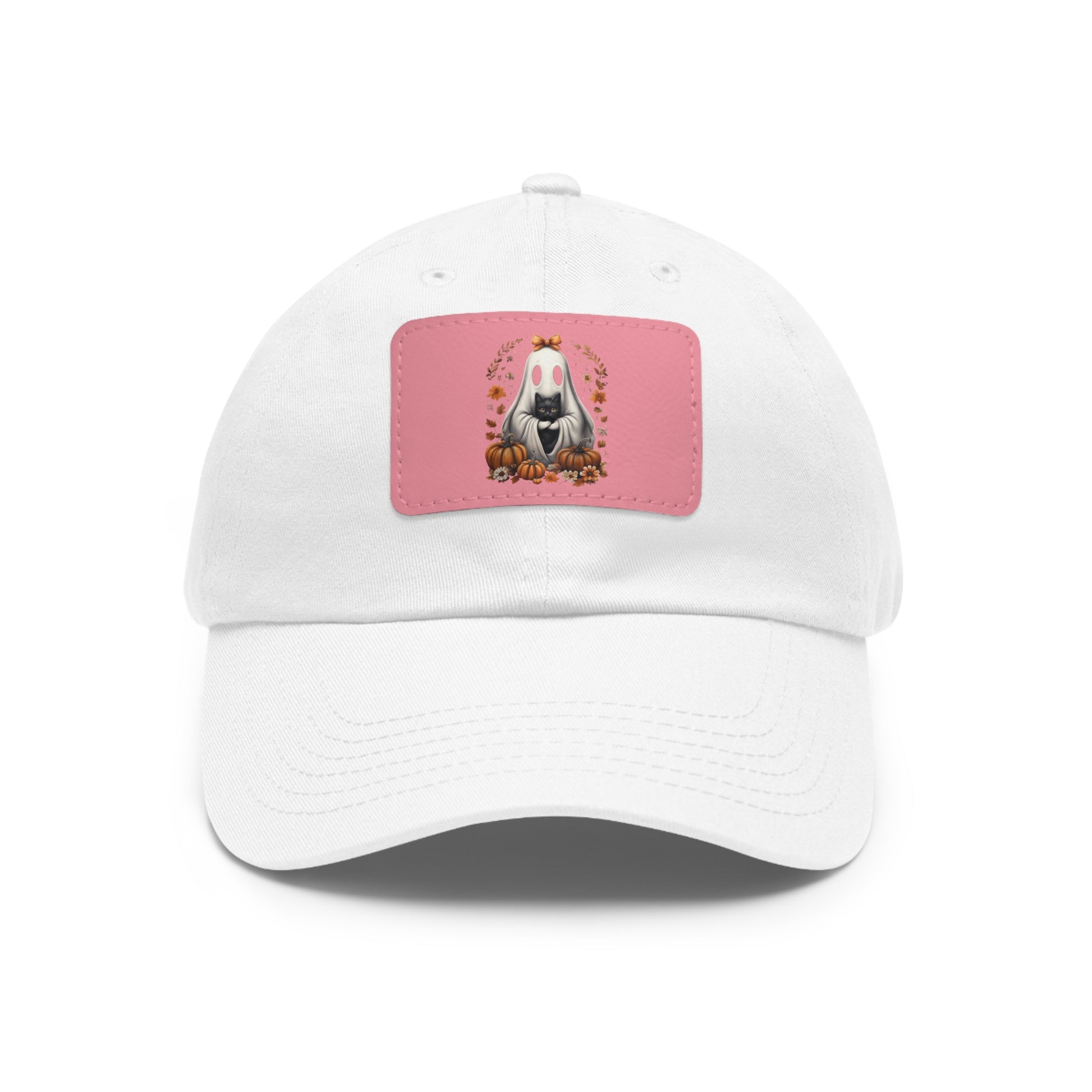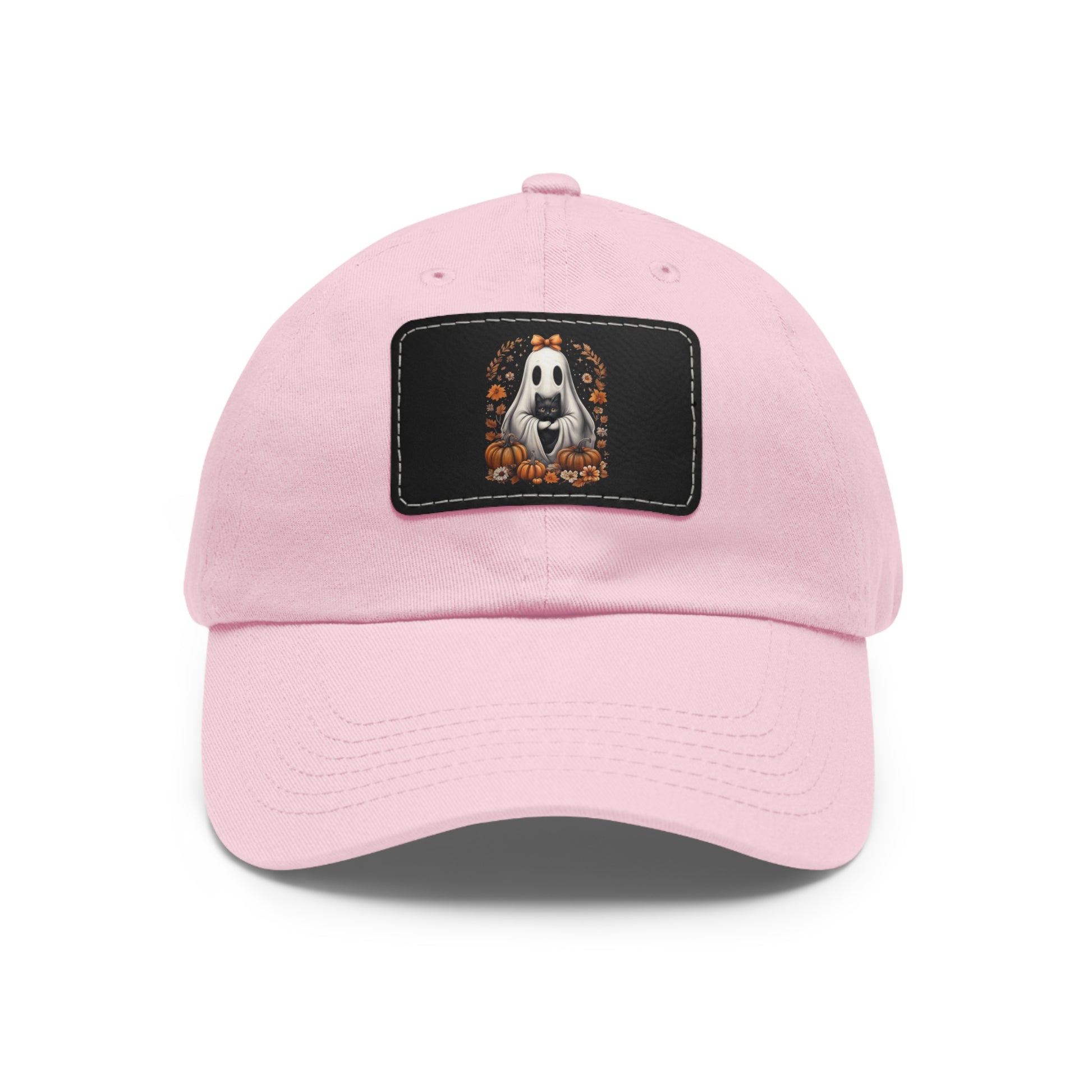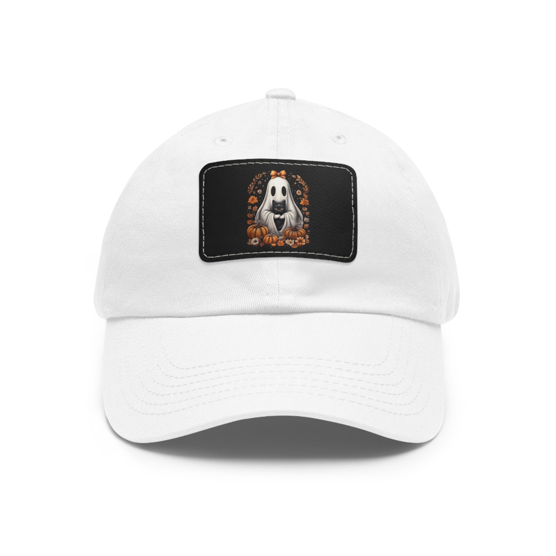 Cute Ghost and Black Cat Halloween T-Shirt | Cozy Fall Pumpkin Shirt | Spooky Season Aesthetic Apparel Gift for Halloween Lovers Dad Hat