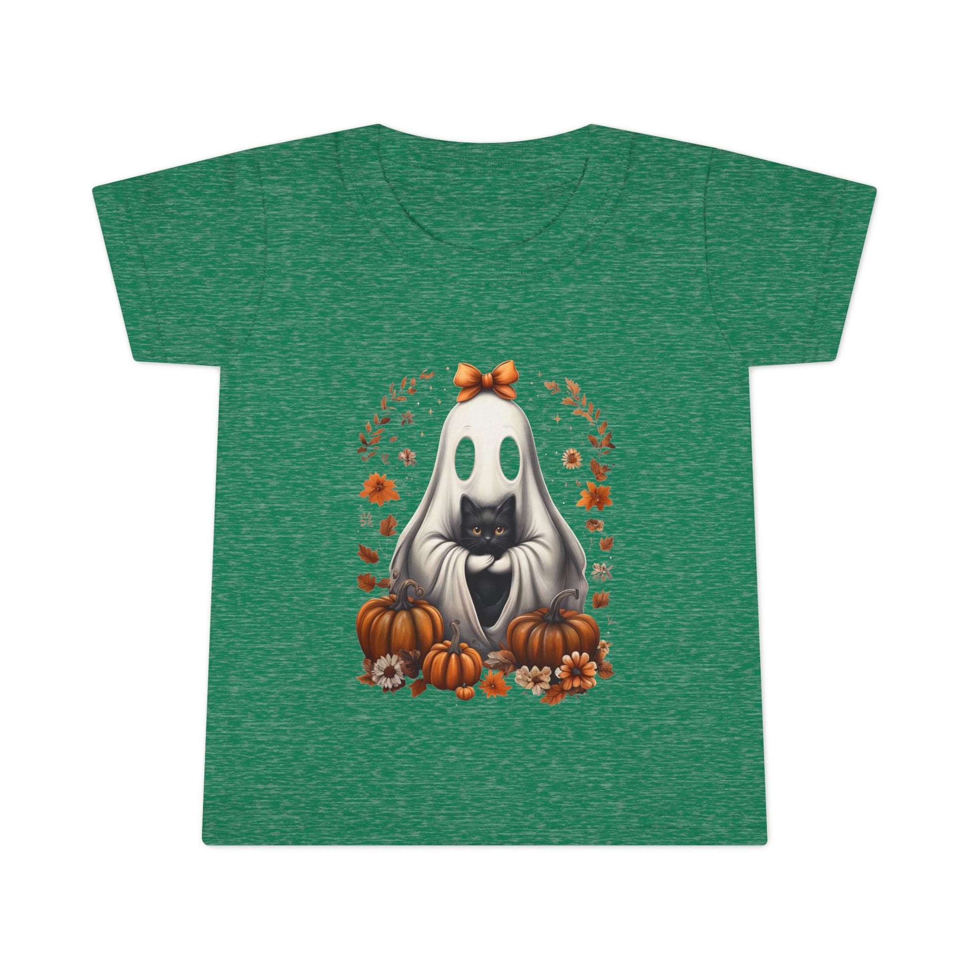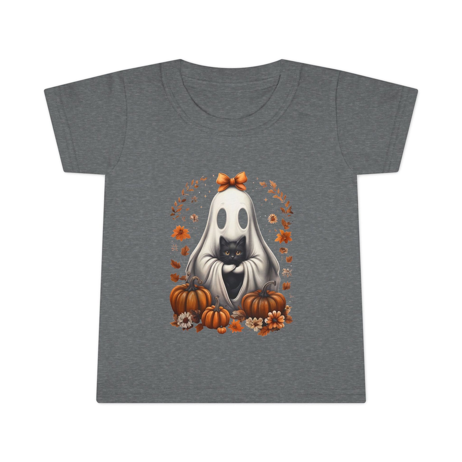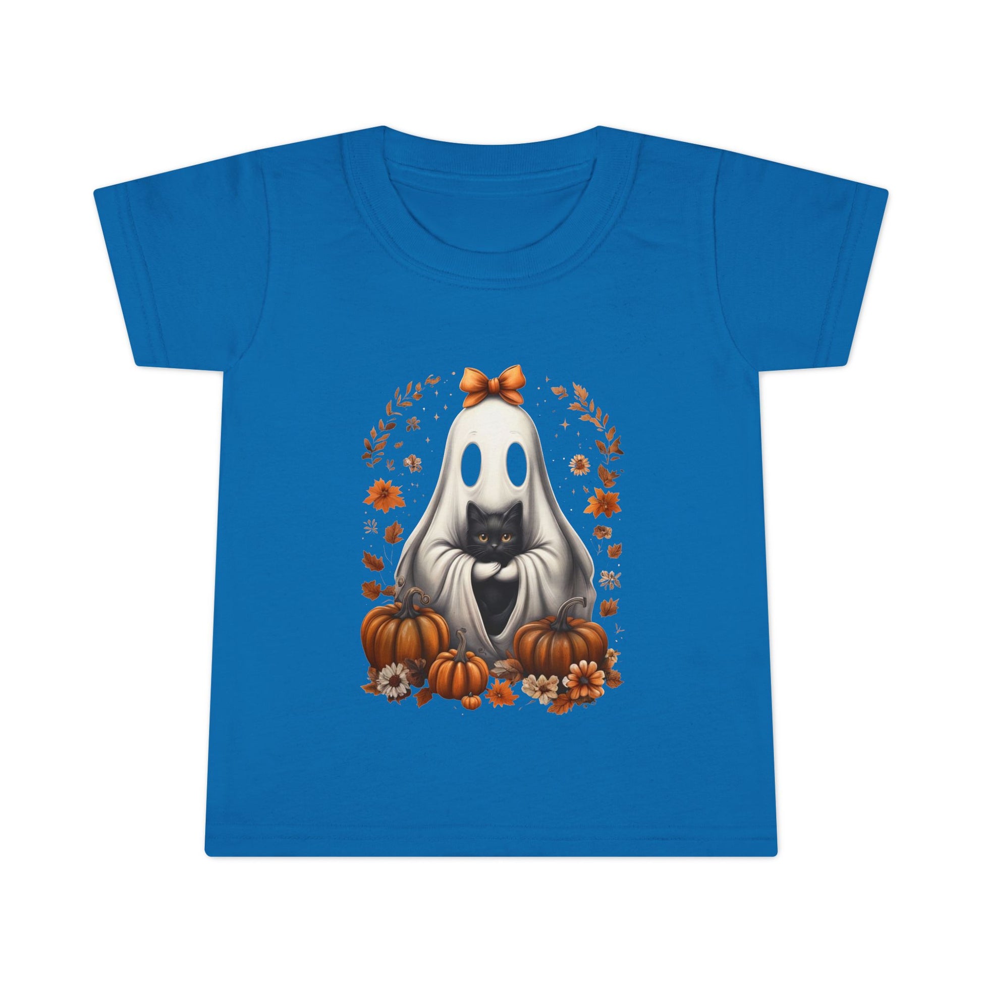 Cute Ghost and Black Cat Halloween T-Shirt | Cozy Fall Pumpkin Shirt | Spooky Season Aesthetic Apparel Gift for Halloween Lovers Toddler T-Shirt