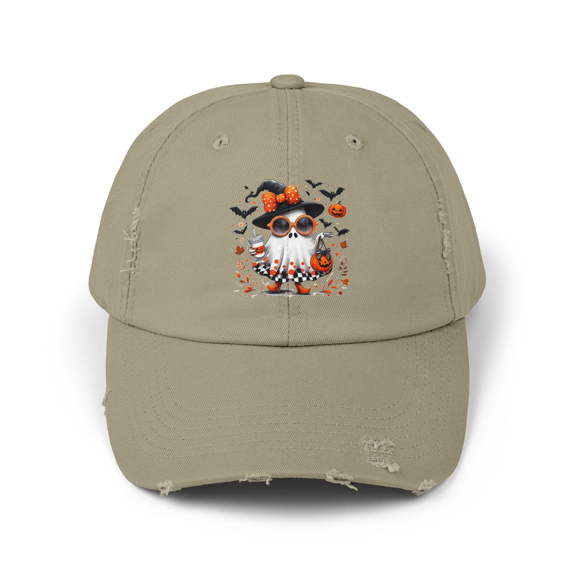 Cute Halloween Ghost | Trendy Witch Ghost Outfit | Spooky Fall Shirt for Women | Pumpkin Aesthetic Halloween Apparel Gift Distressed cap
