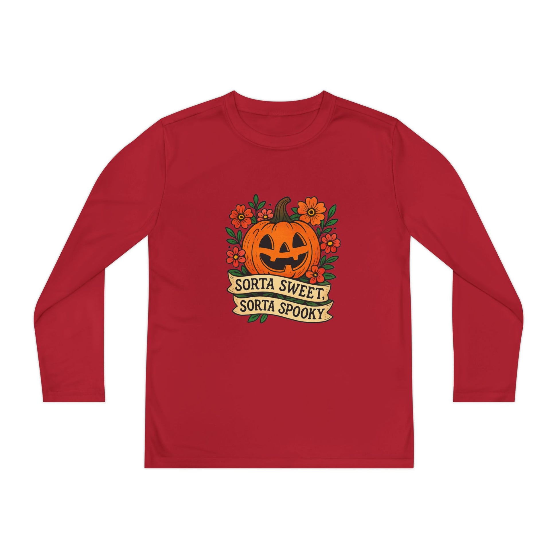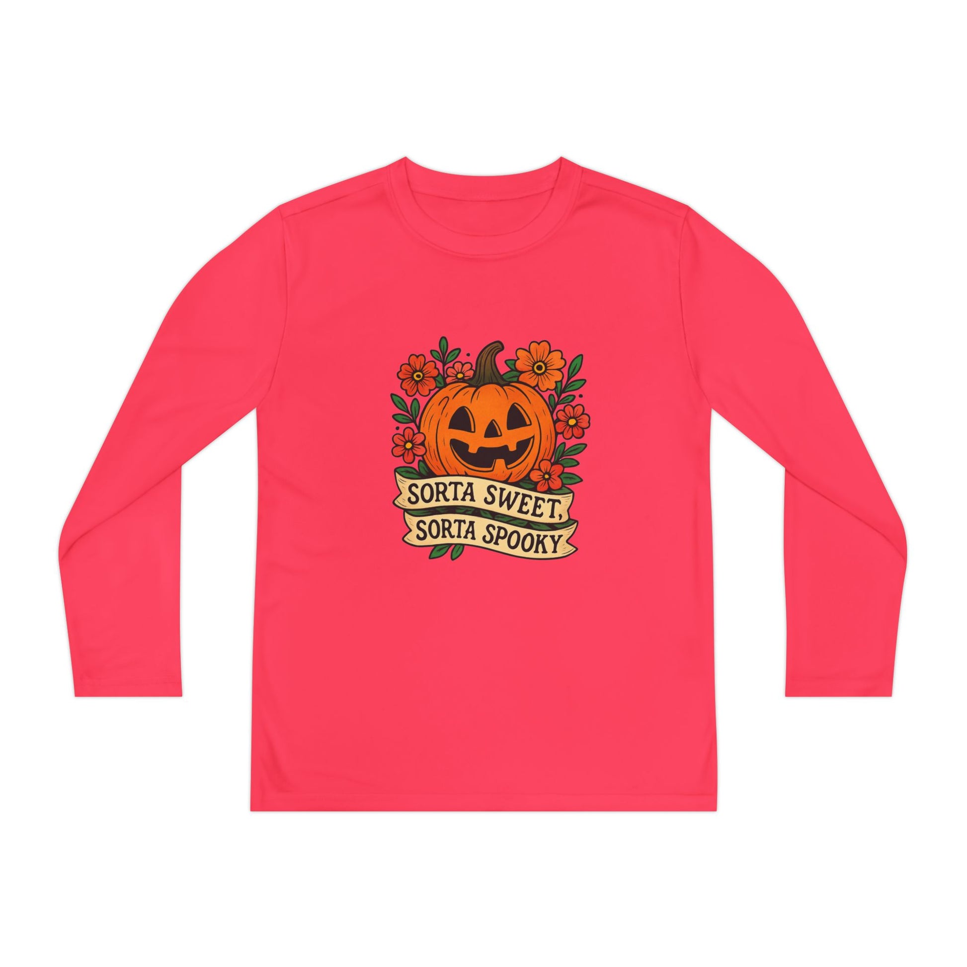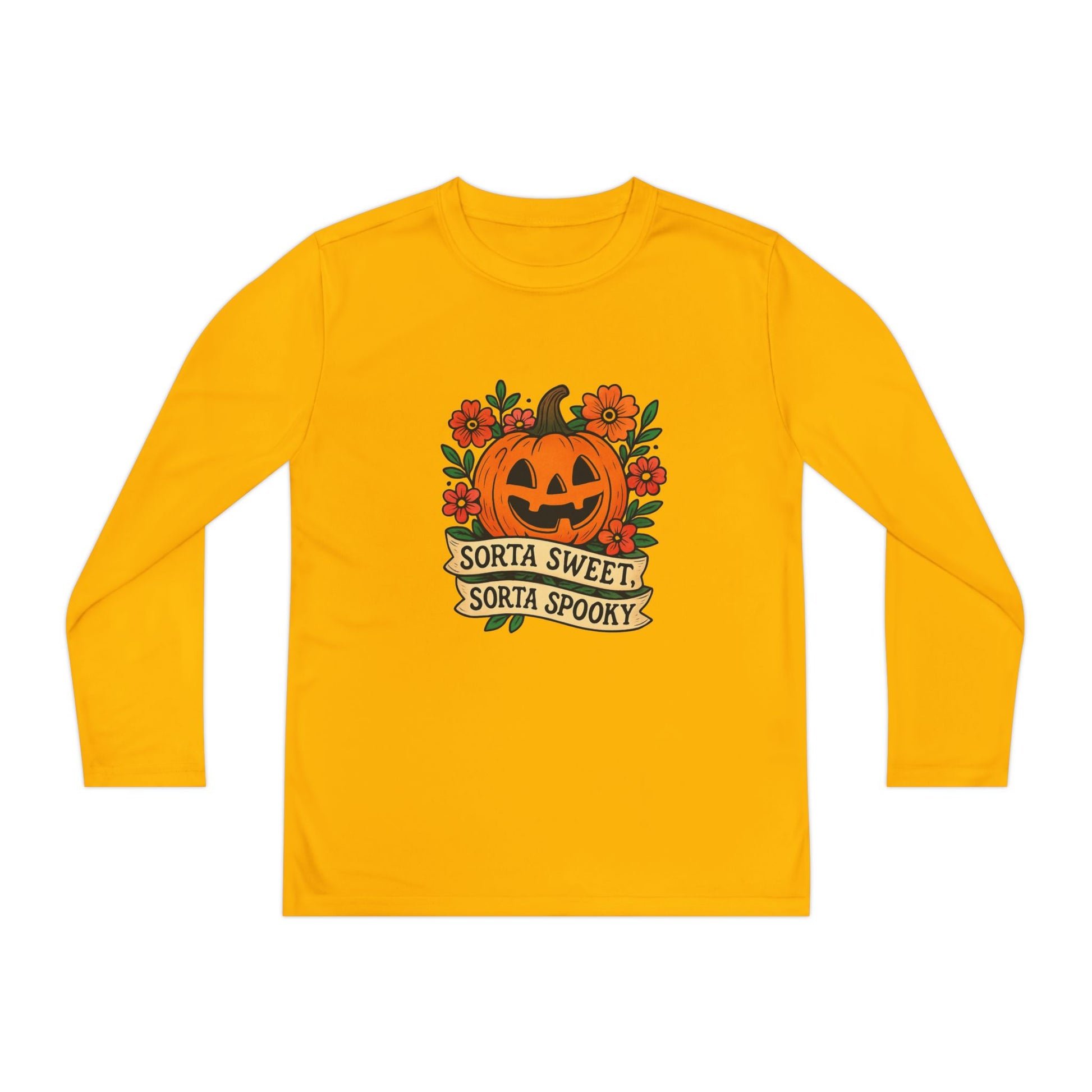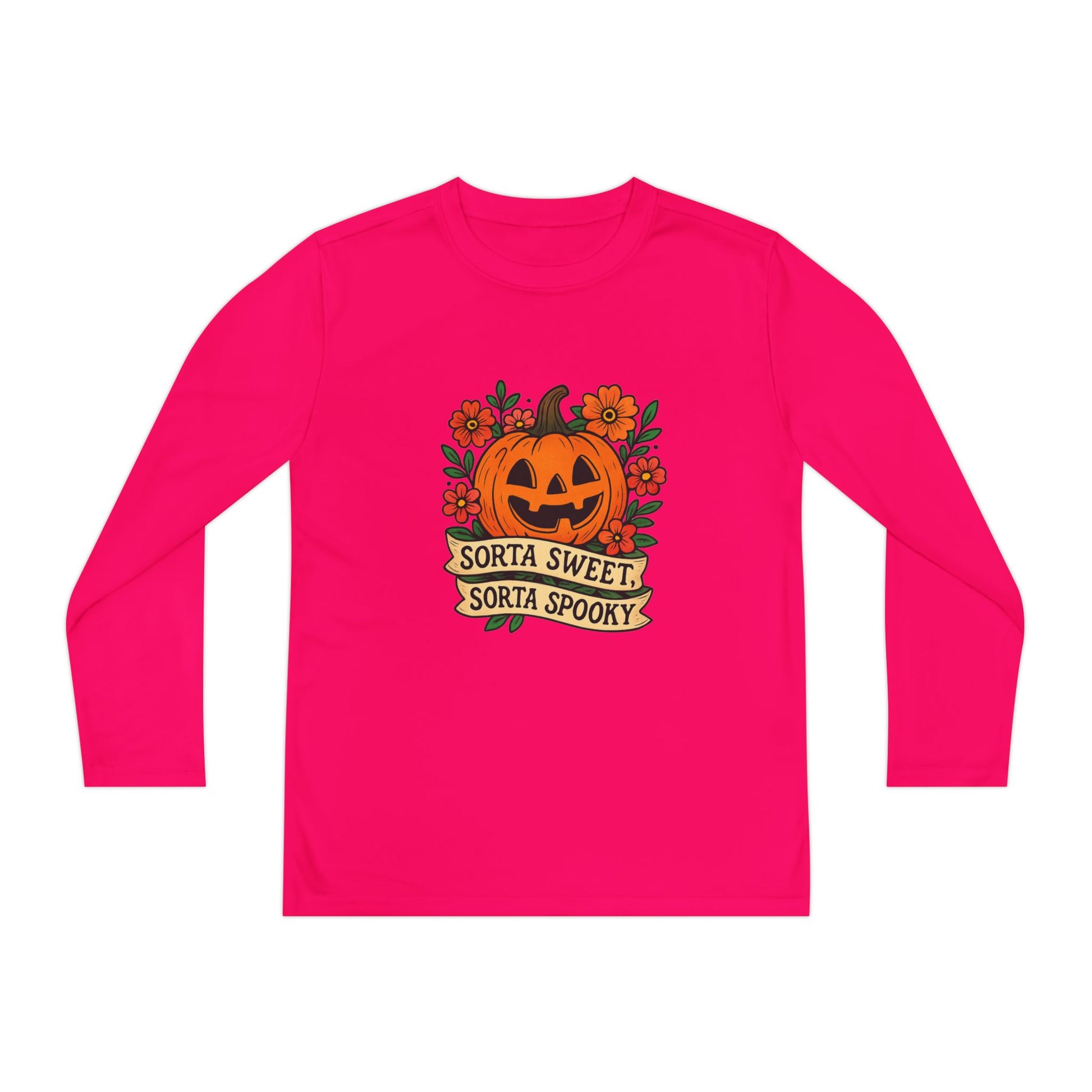 Celebrate Halloween with this adorable pumpkin design that’s both sweet and spooky! Featuring a smiling jack-o’-lantern surrounded by flowers and the phrase “Sorta Sweet, Sorta Spooky,” this Halloween illustration is perfect for t-shirts, hoodies, stickers, and festive décor.