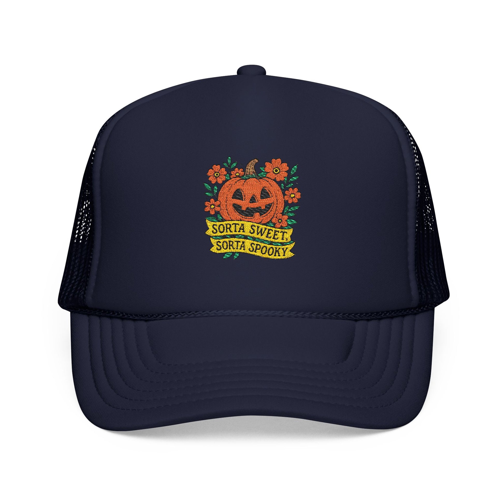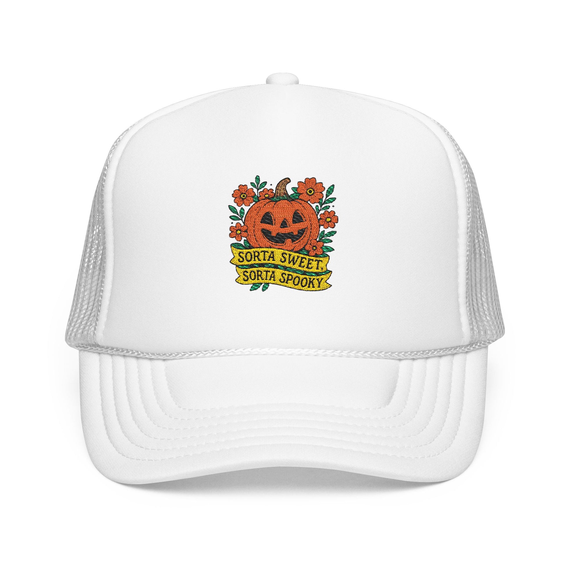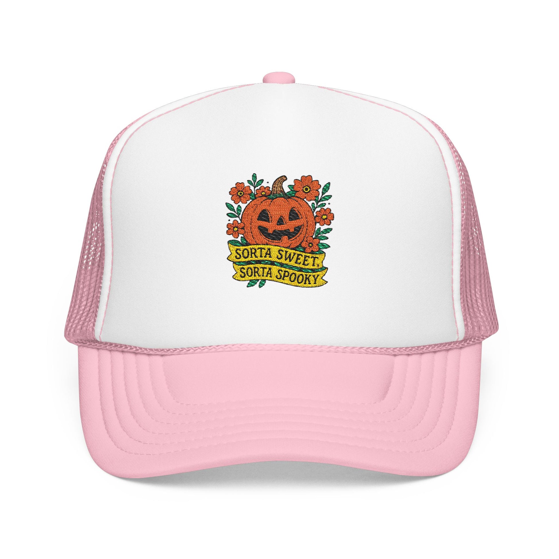 Cute Pumpkin Design – Sorta Sweet, Sorta Spooky Halloween Artwork Trucker Hat Embroidered