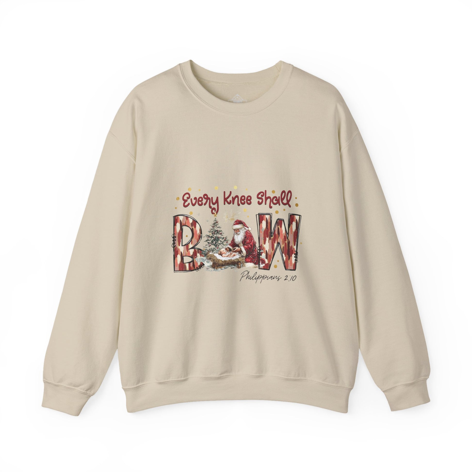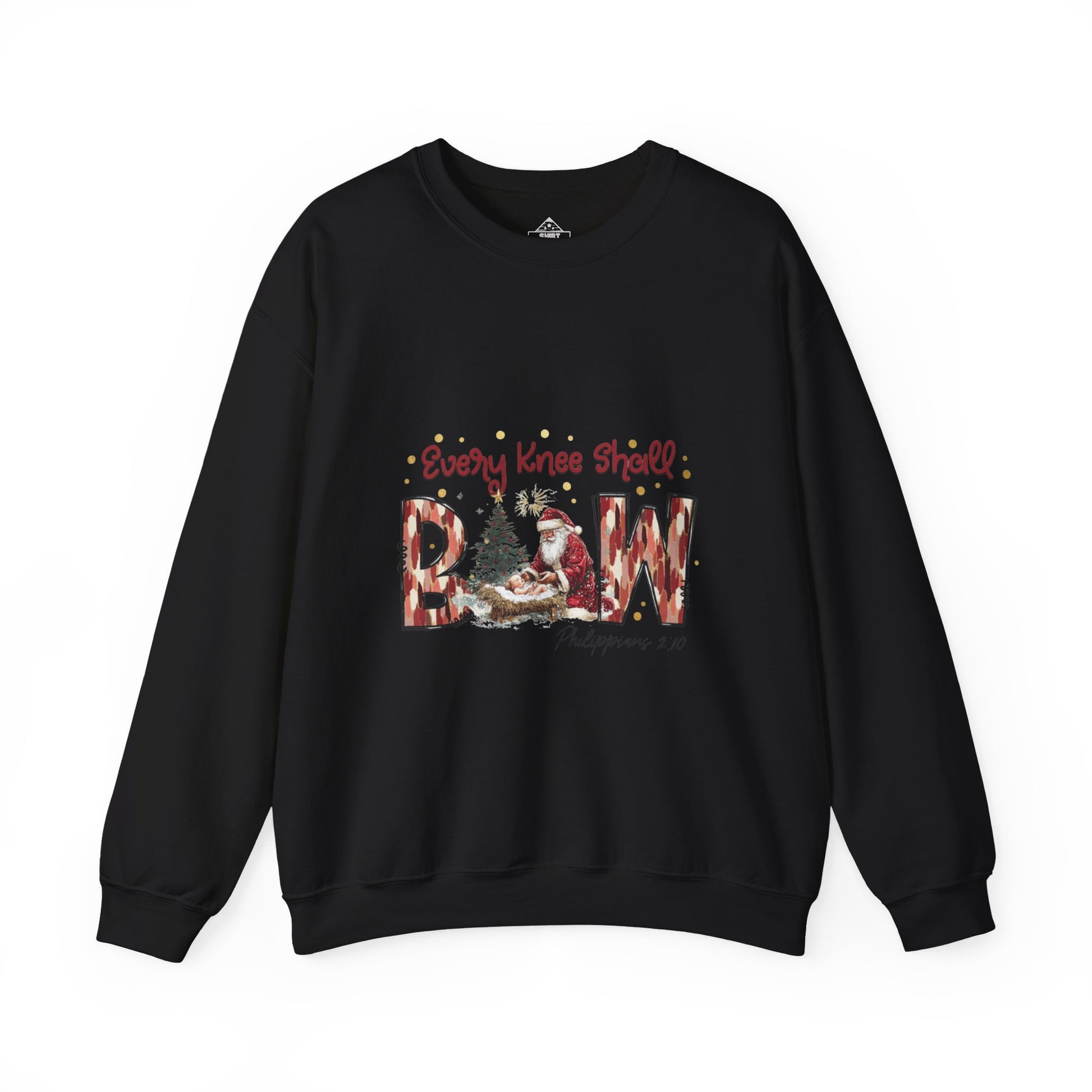 Every Knee Shall Bow Philippians 2:10 | Christian Christmas Design with Santa & Baby Jesus | Faith-Based Holiday Gift