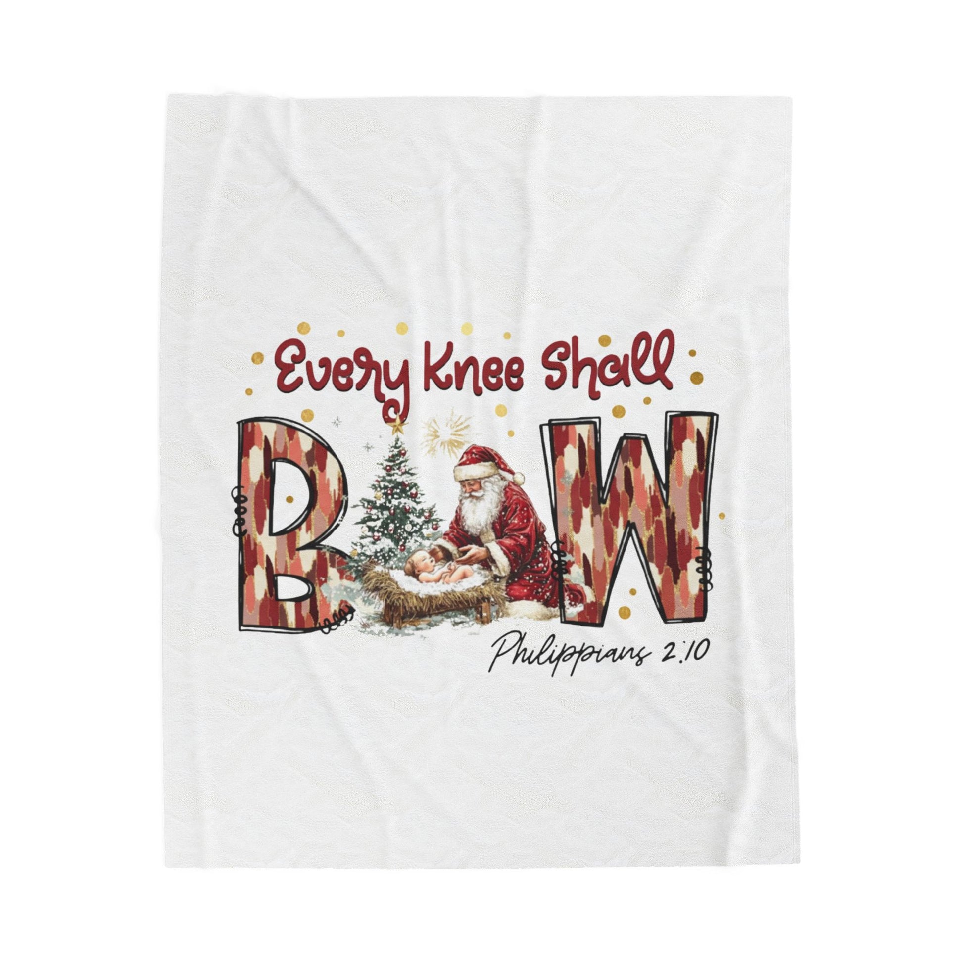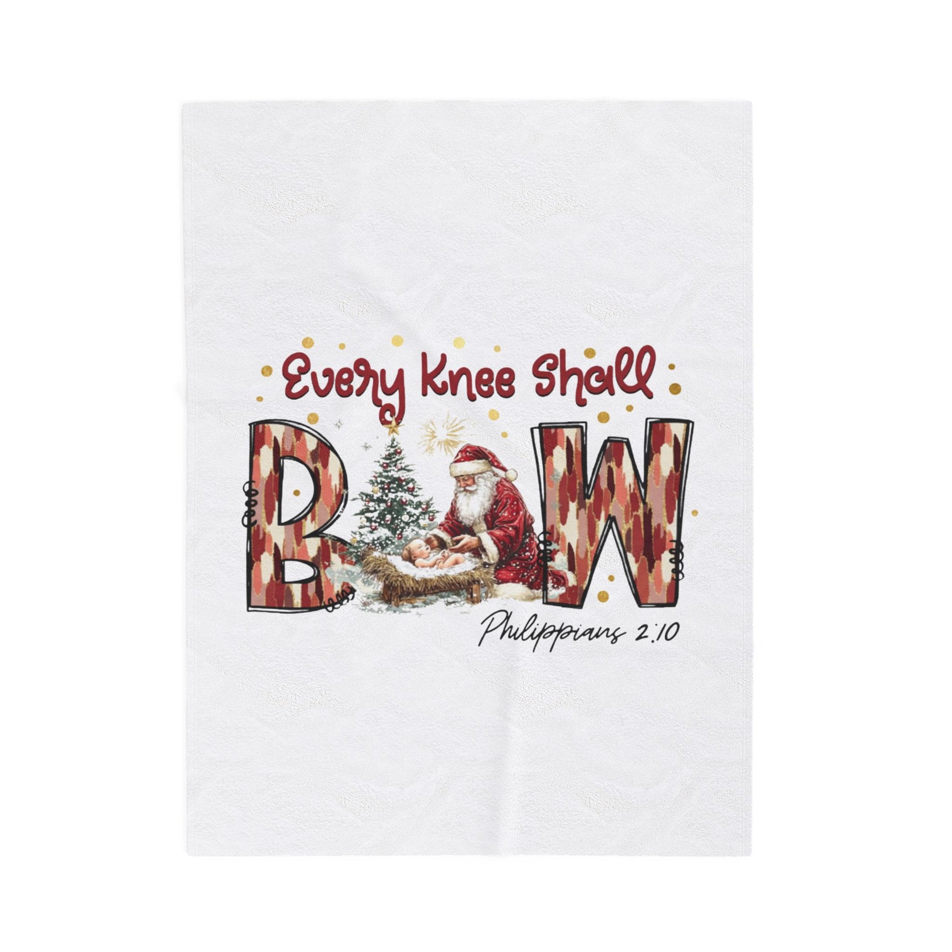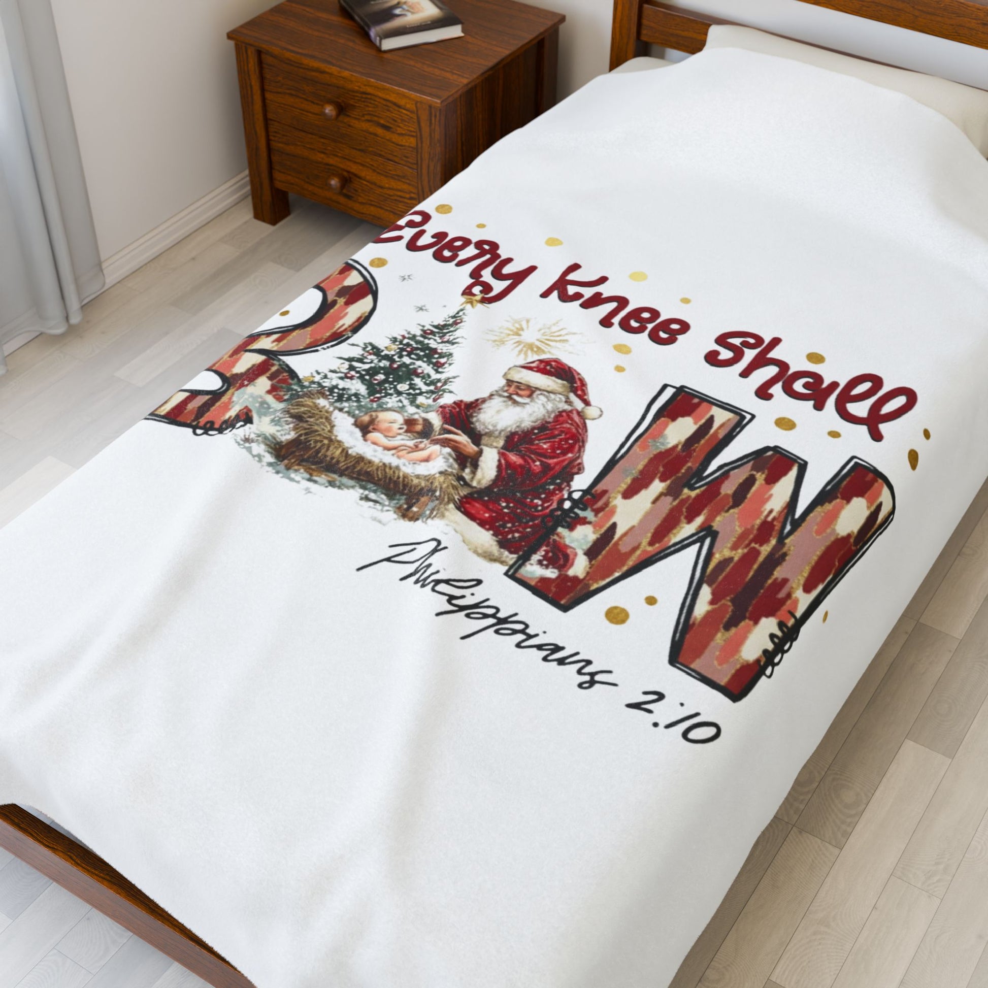 Every Knee Shall Bow Philippians 2:10 | Christian Christmas Design with Santa & Baby Jesus | Faith-Based Holiday Gift Blanket