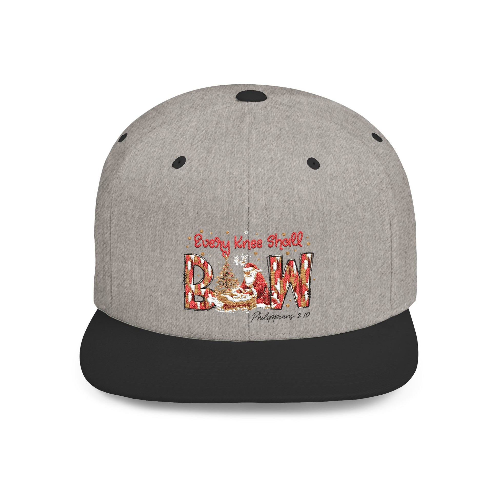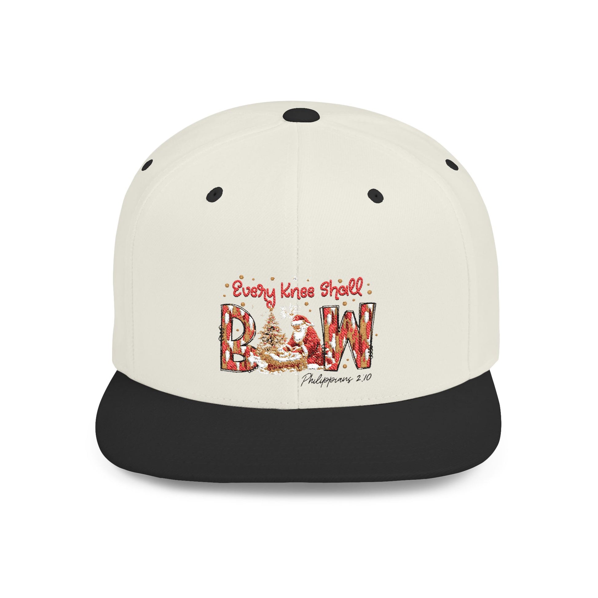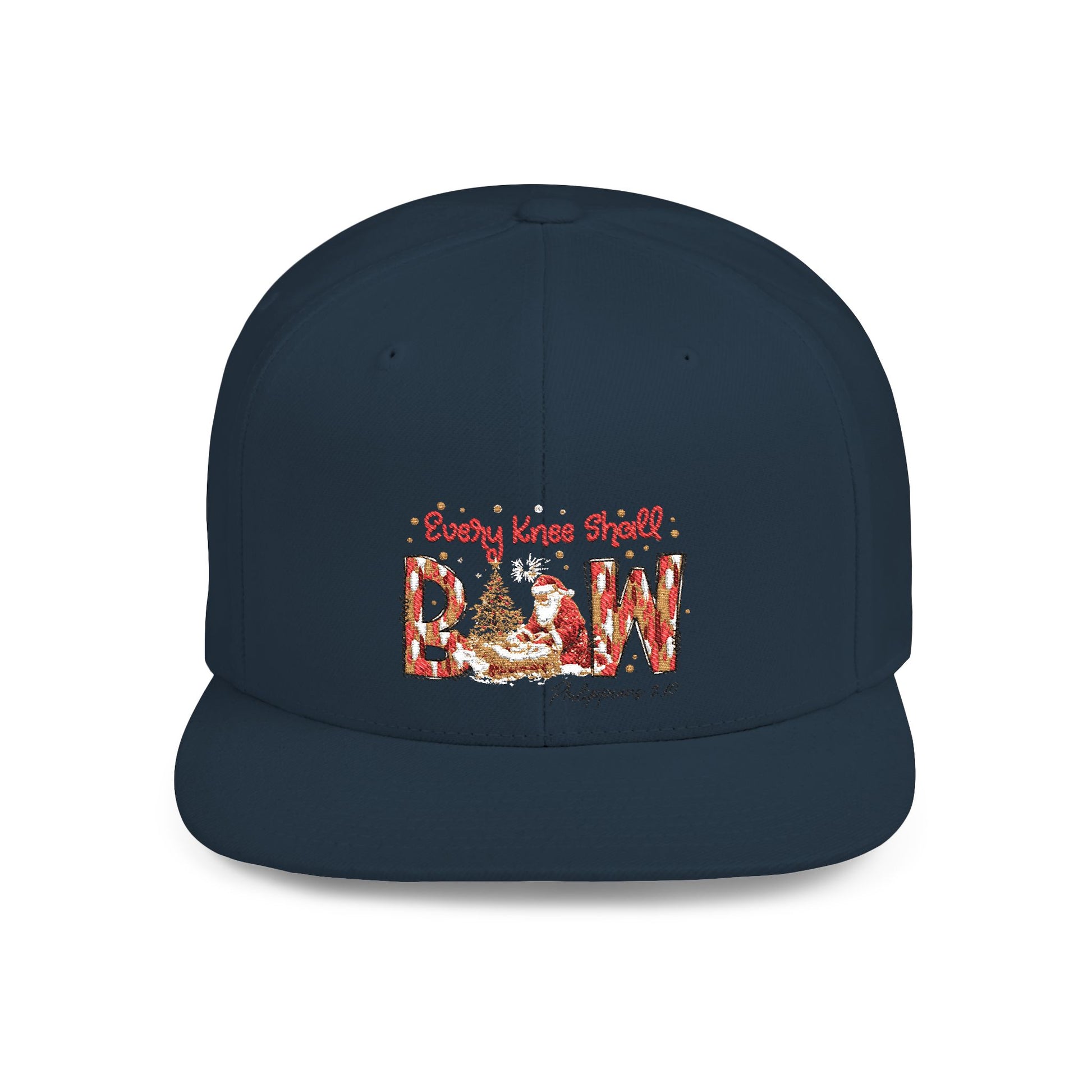 Every Knee Shall Bow Philippians 2:10 | Christian Christmas Design with Santa & Baby Jesus | Faith-Based Holiday Gift Snapback Cap