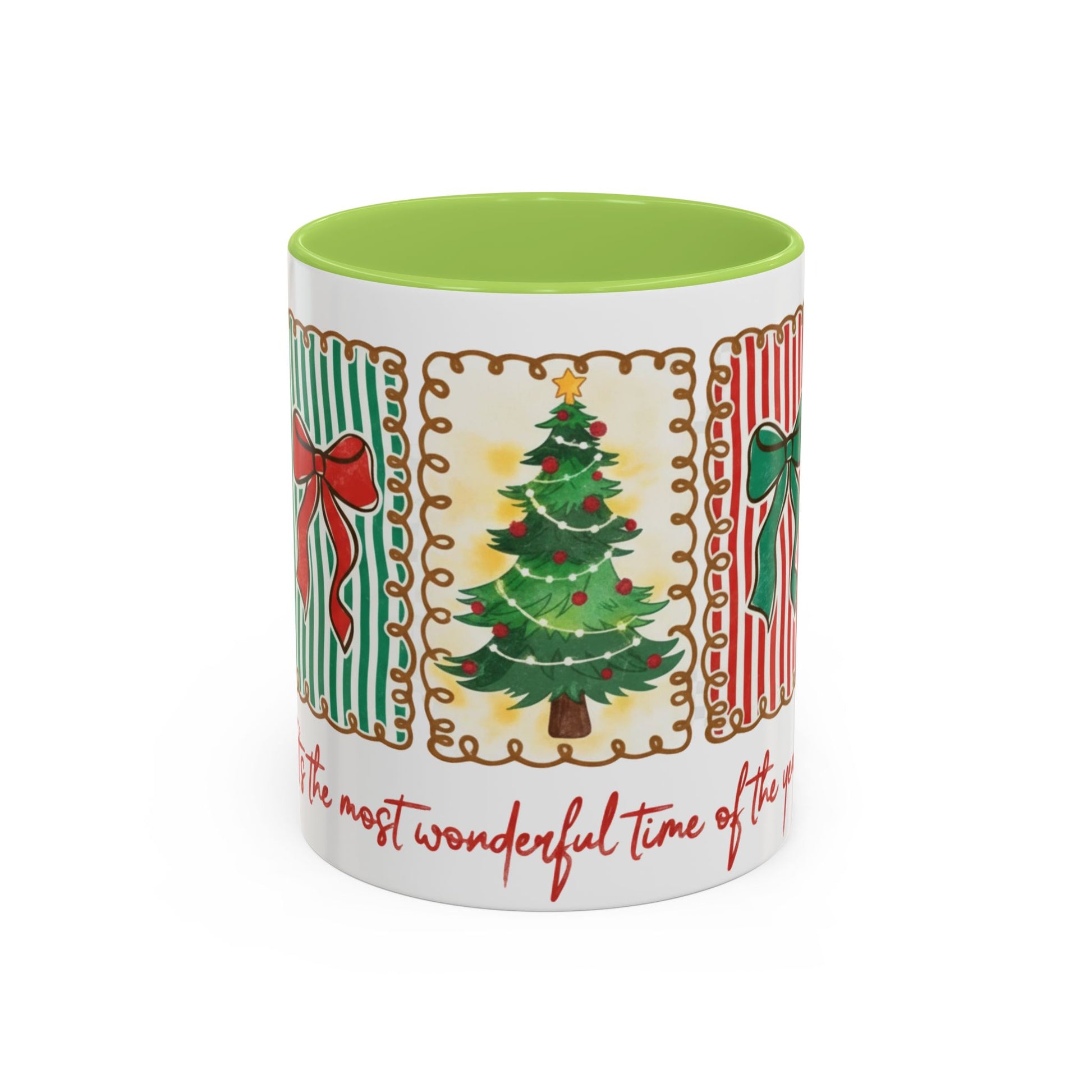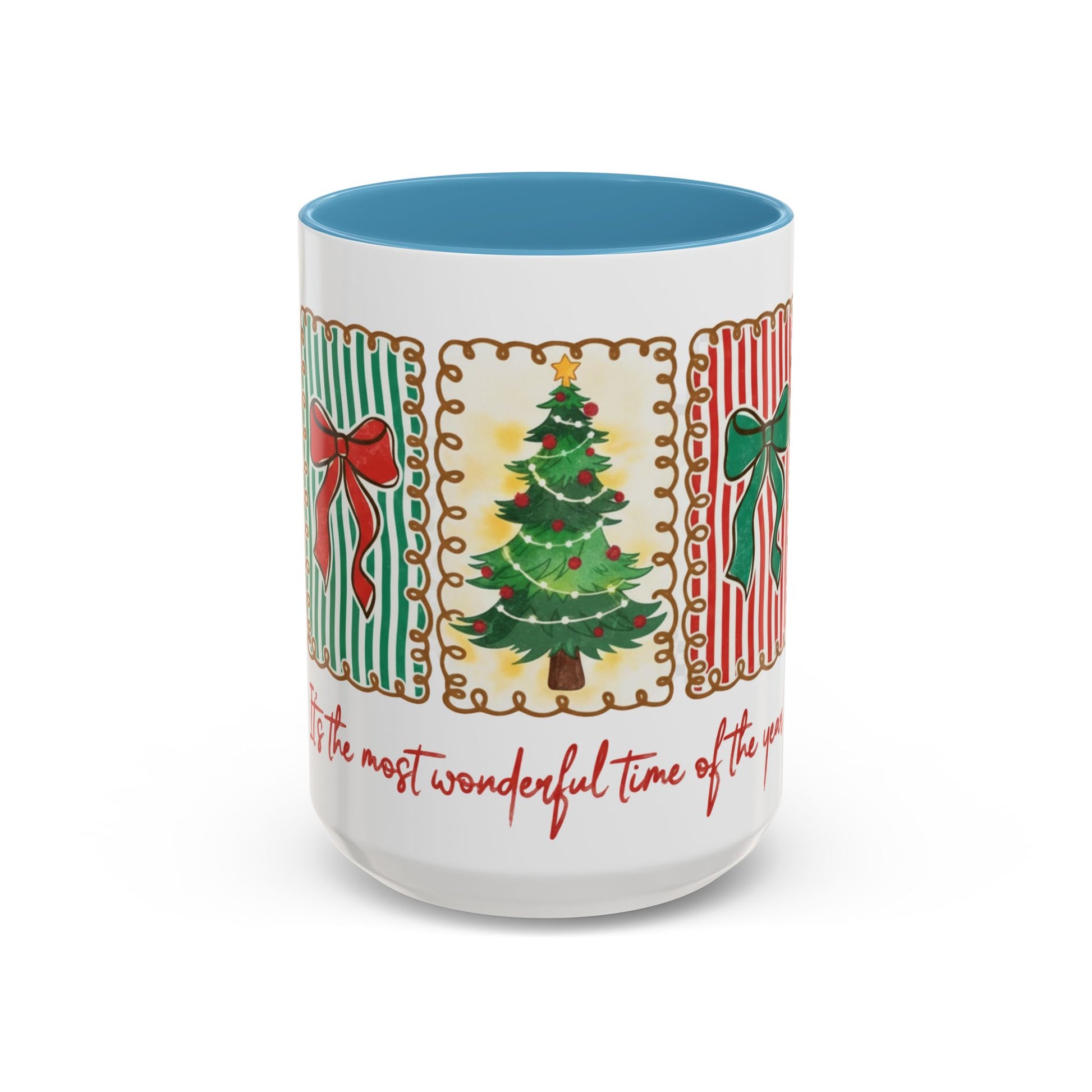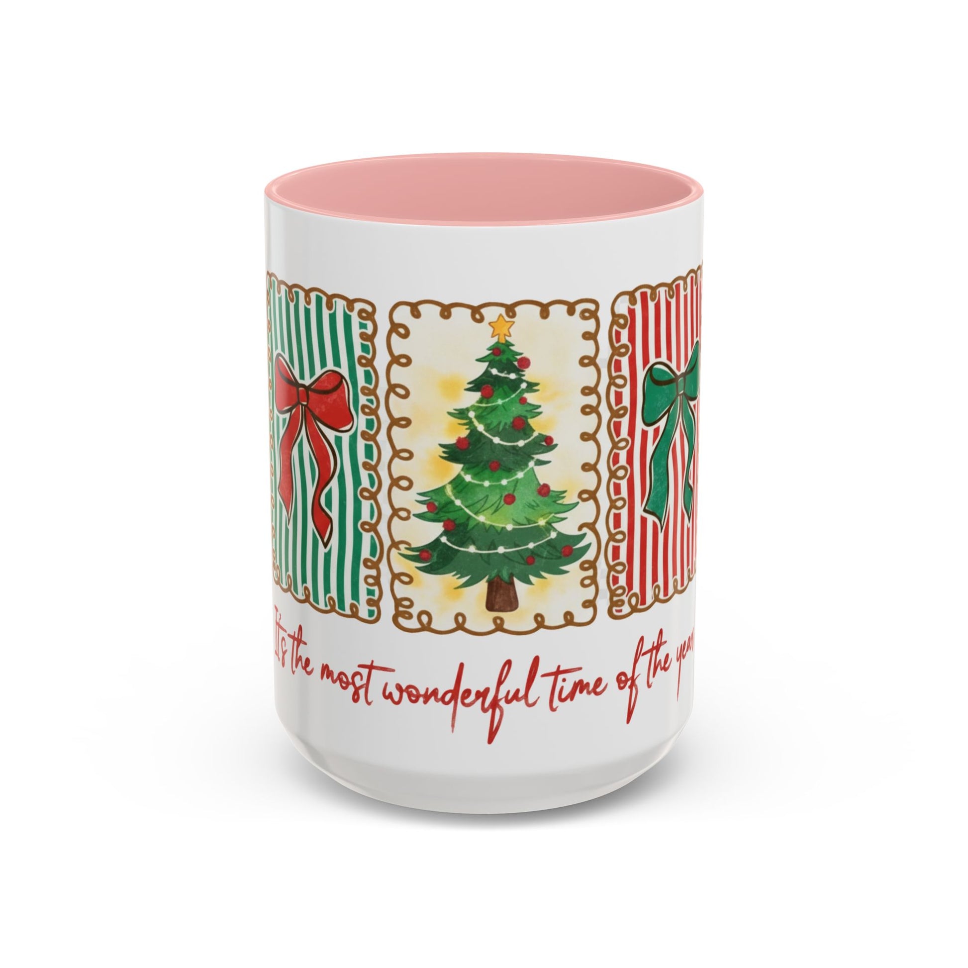 Festive Christmas Tree & Bow Design | It’s the Most Wonderful Time of the Year – Holiday Shirt, Mug, Tote & Home Decor Accent Mug