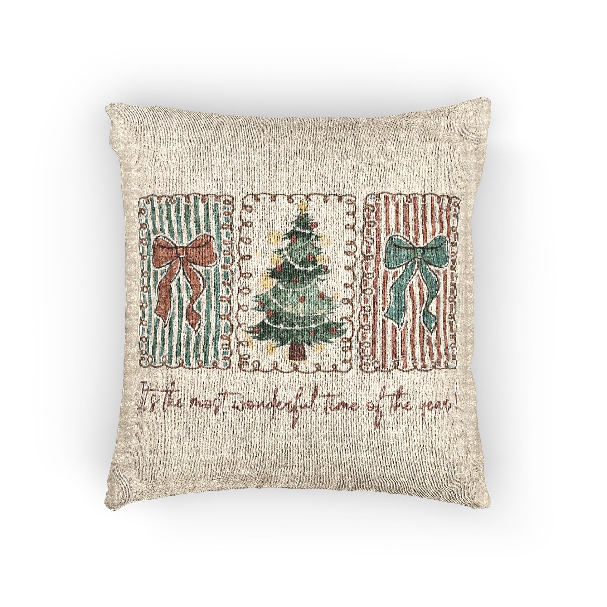 Festive Christmas Tree & Bow Design | It’s the Most Wonderful Time of the Year – Holiday Shirt, Mug, Tote & Home Decor Throw Pillow