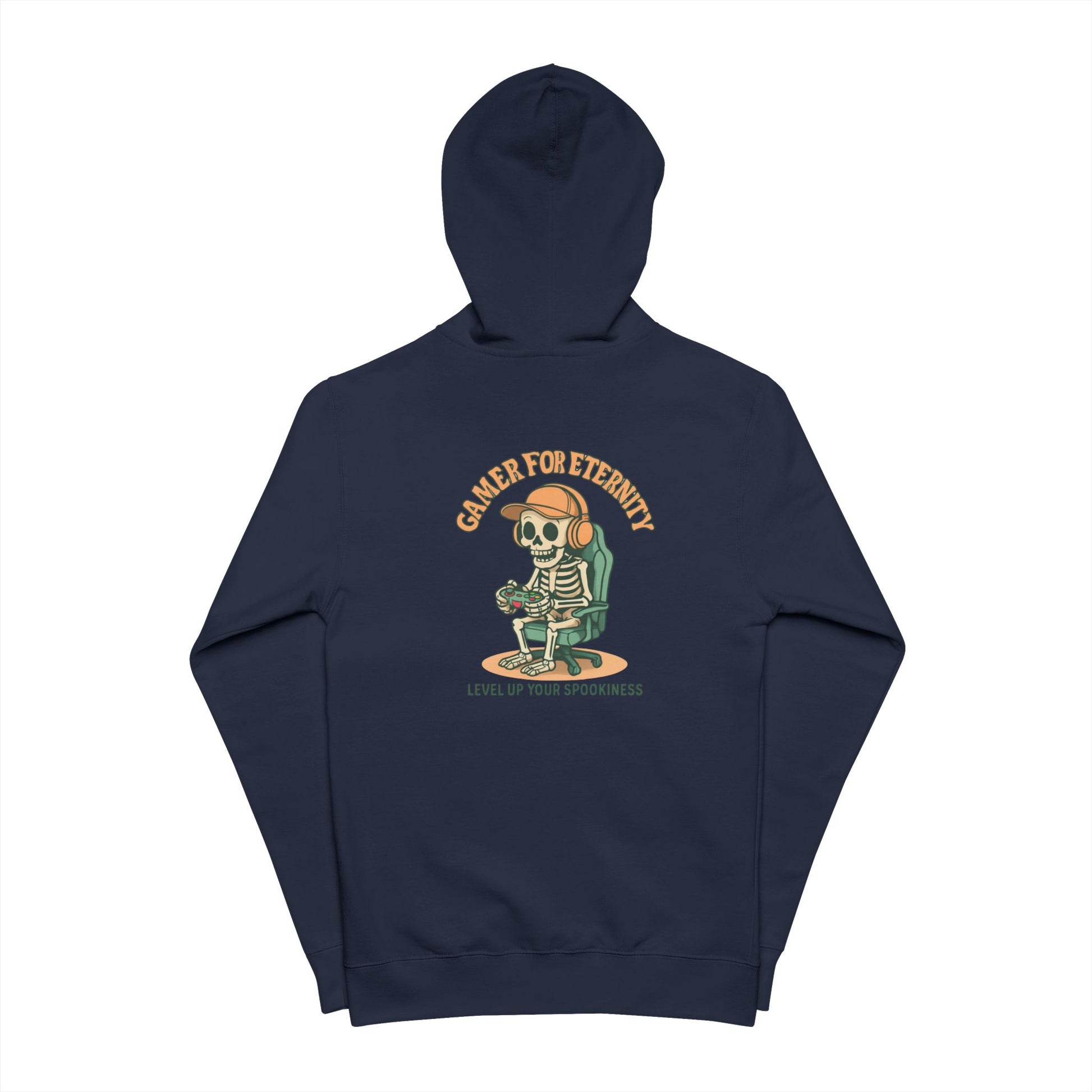 Bring together the best of gaming and Halloween with this unique Skeleton Gamer Design. The artwork features a friendly skeleton sitting in a gaming chair, wearing headphones, and holding a controller—perfectly capturing both the passion of gaming and the fun of spooky season.