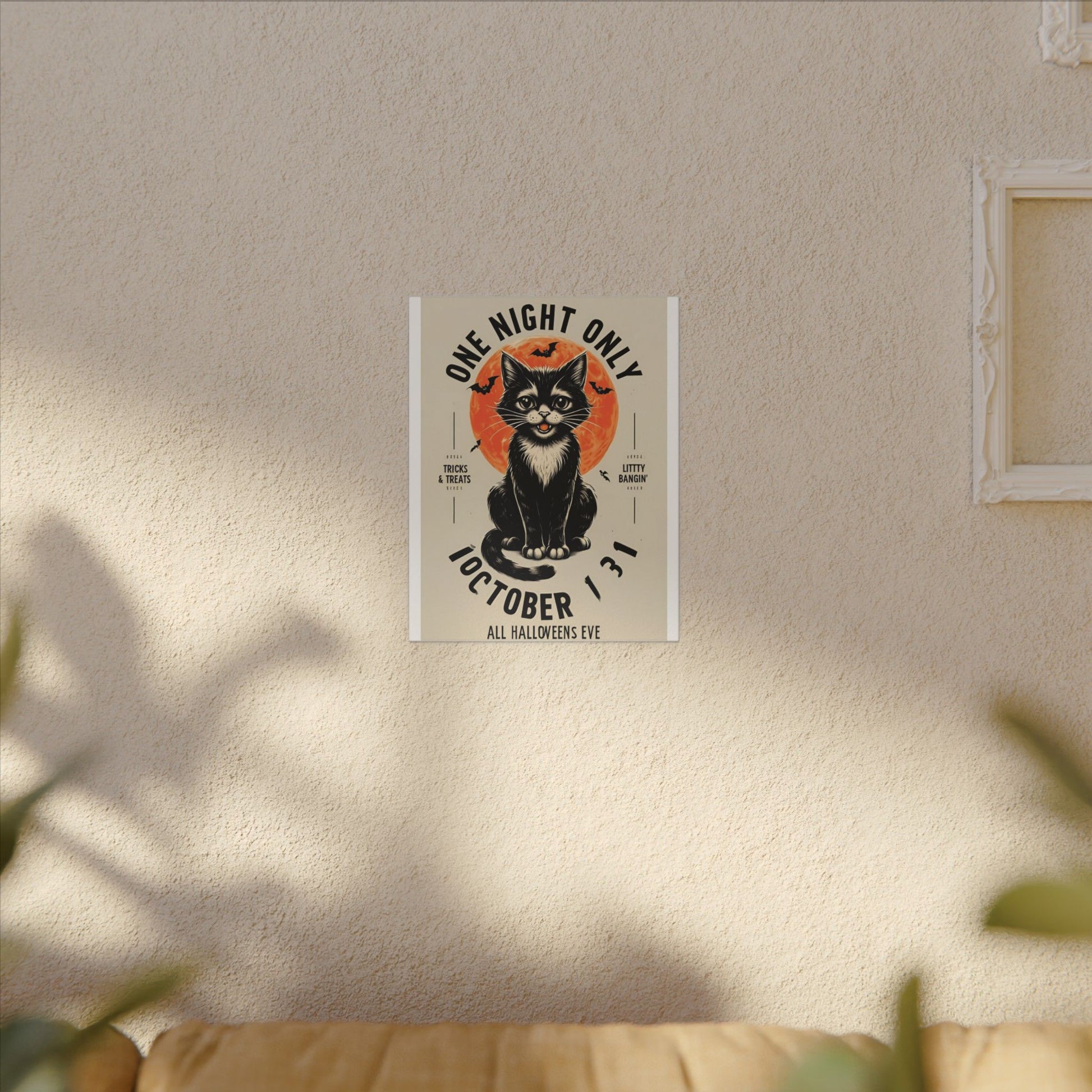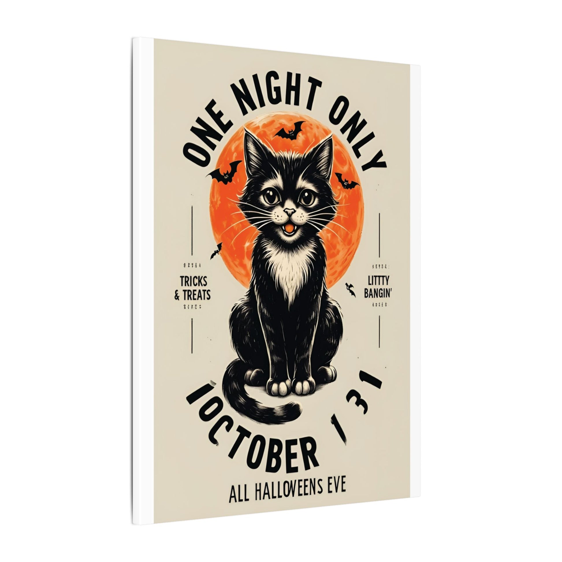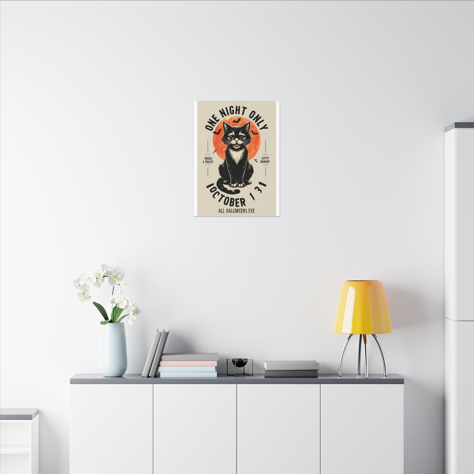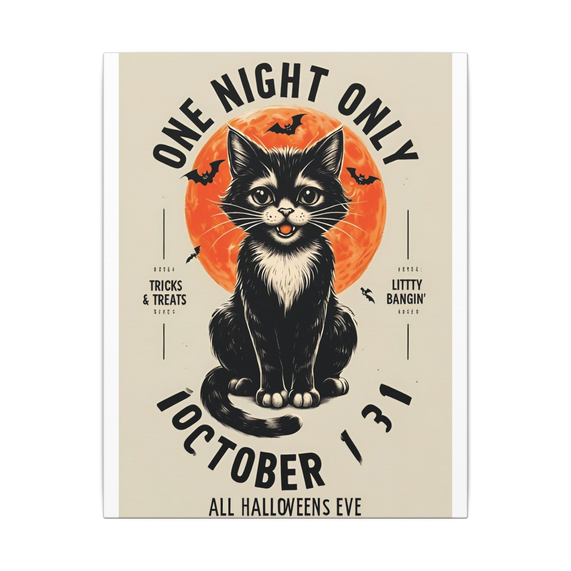 Halloween Black Cat Design | One Night Only October 31 Vintage Artwork Canvas Print