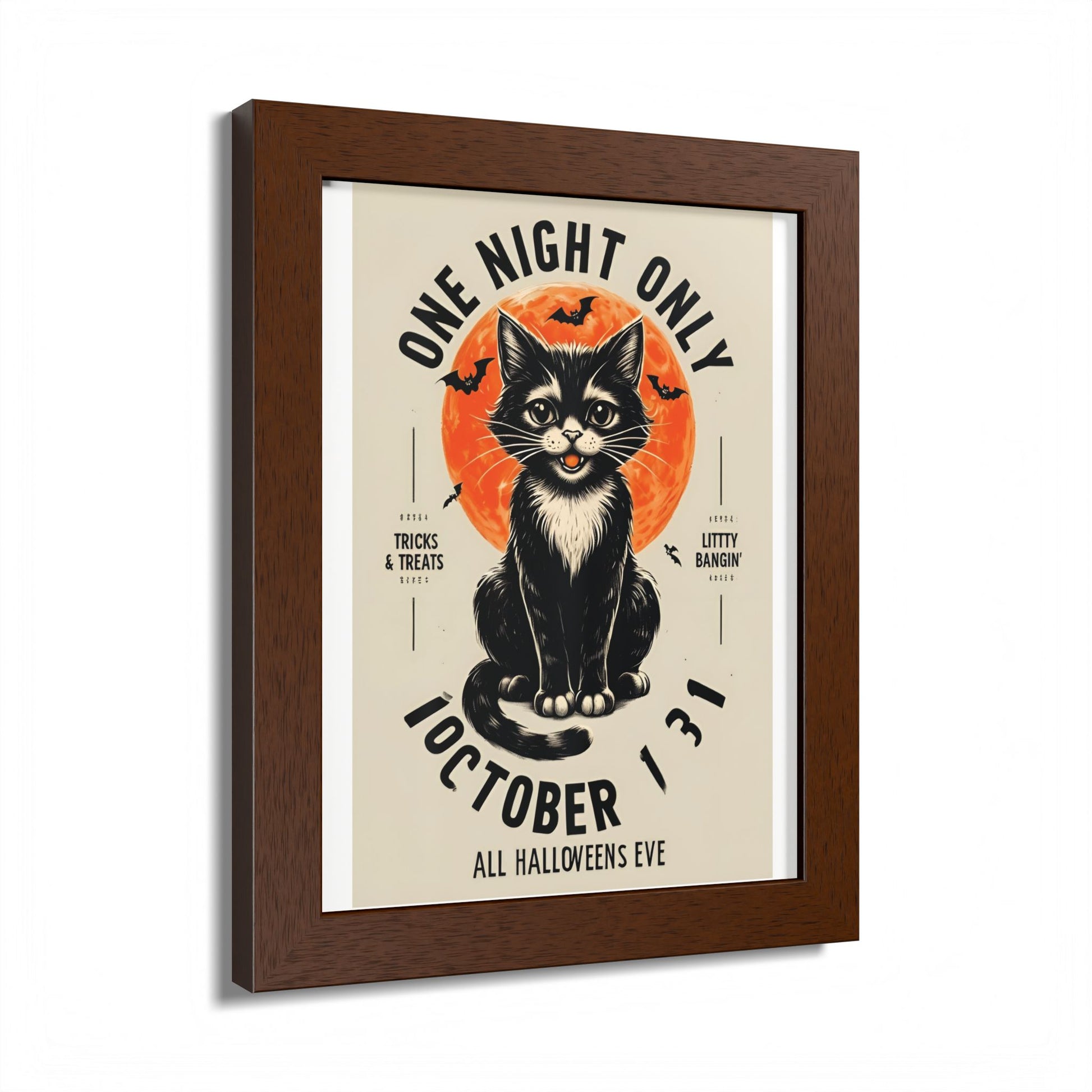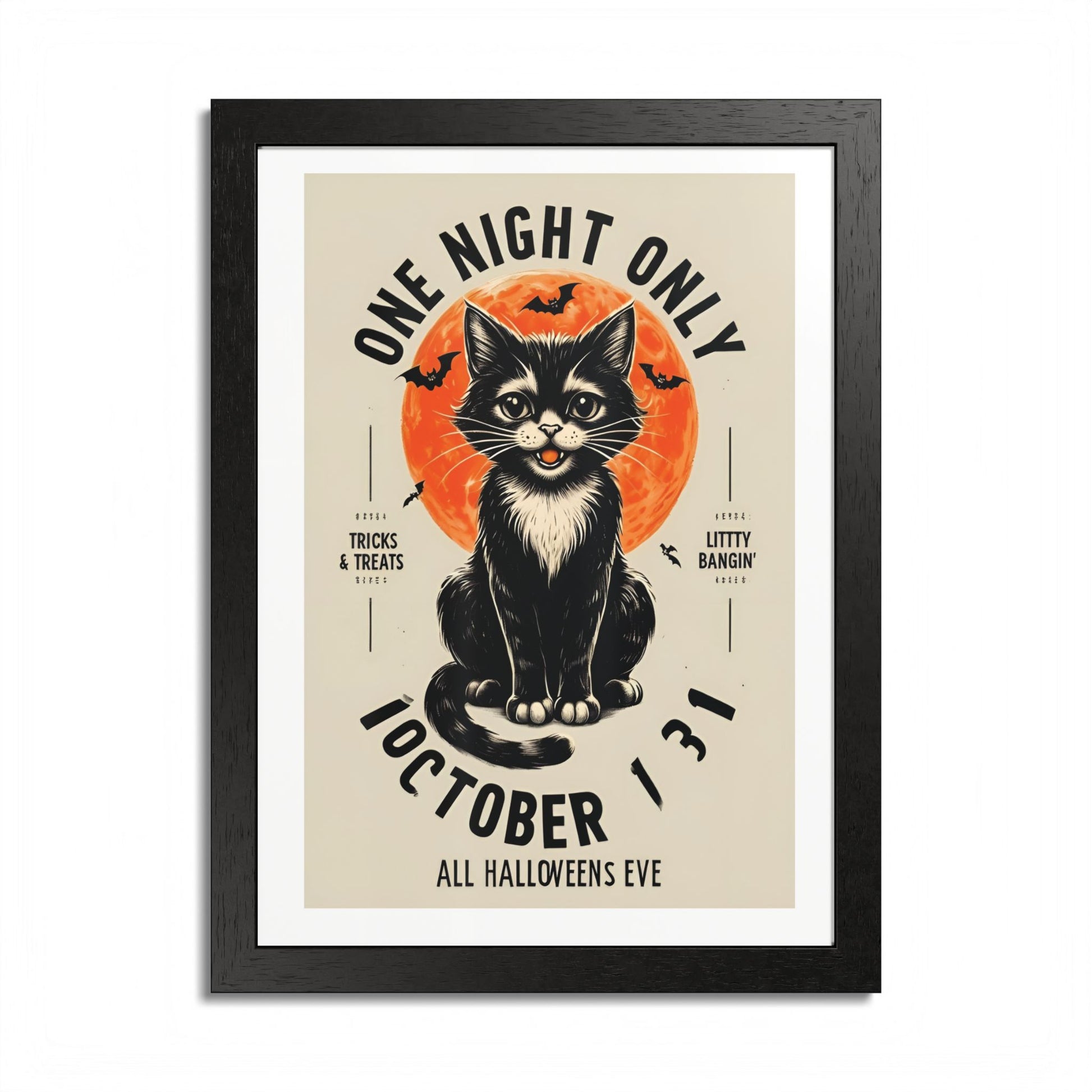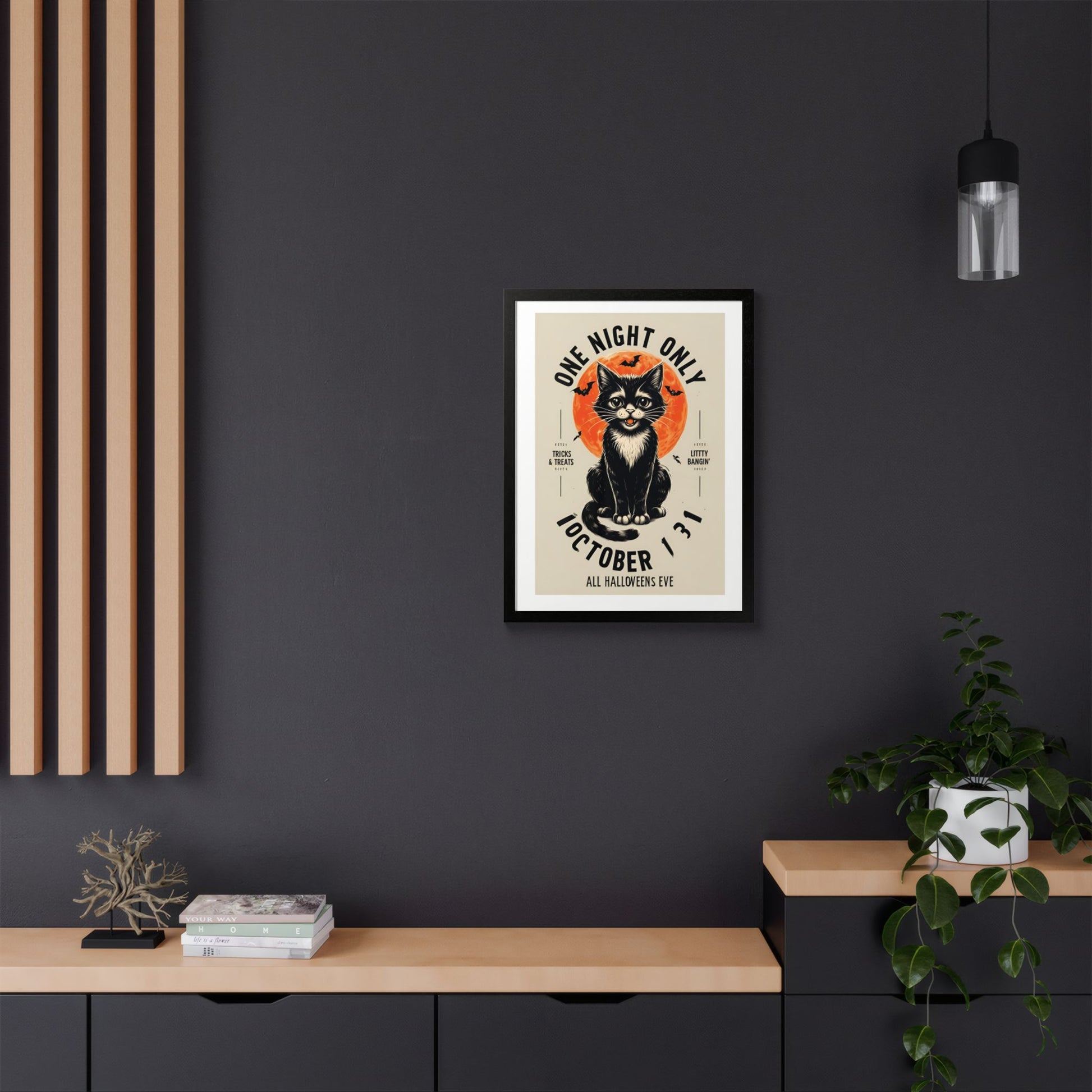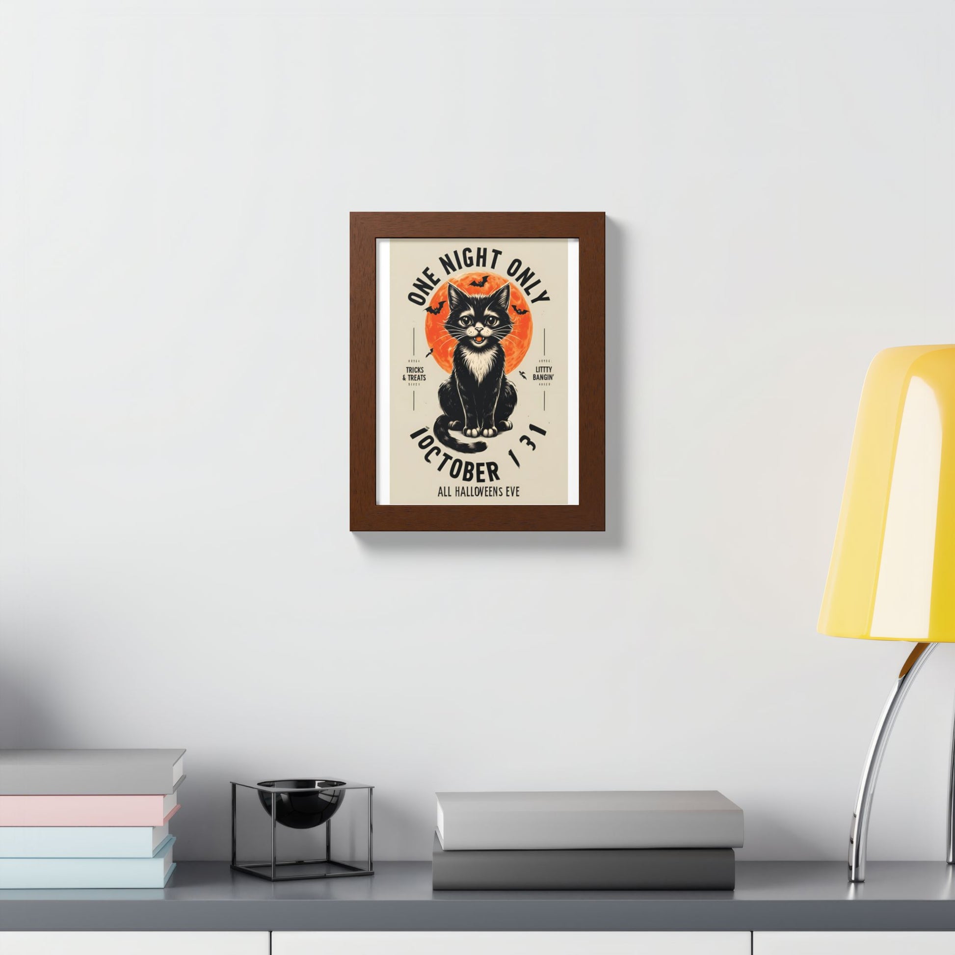 Halloween Black Cat Design | One Night Only October 31 Vintage Artwork Framed Print