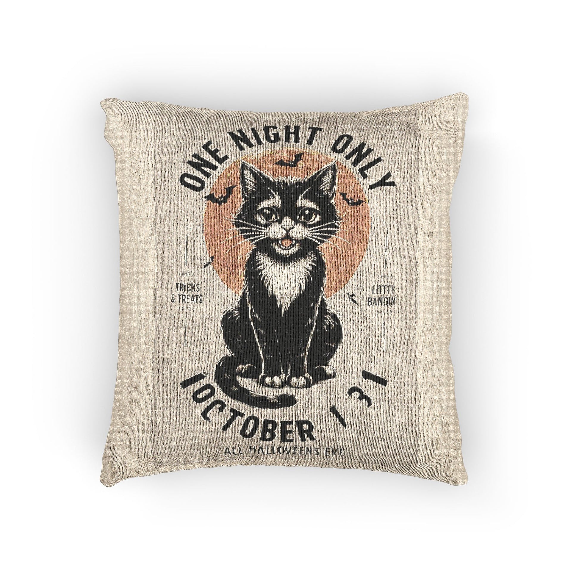Halloween Black Cat Design | One Night Only October 31 Vintage Artwork Throw Pillow