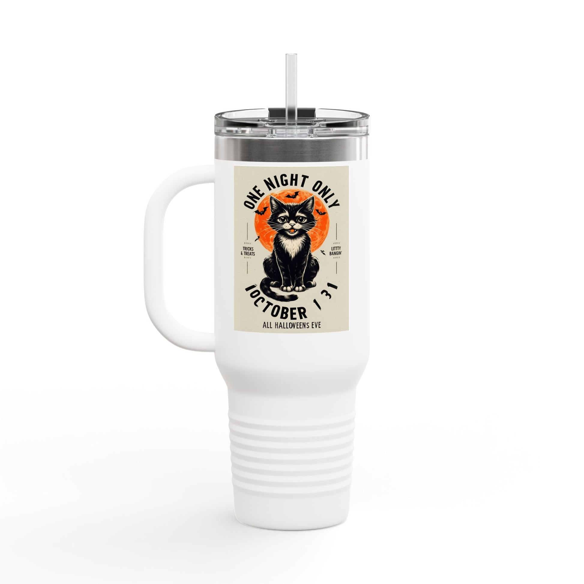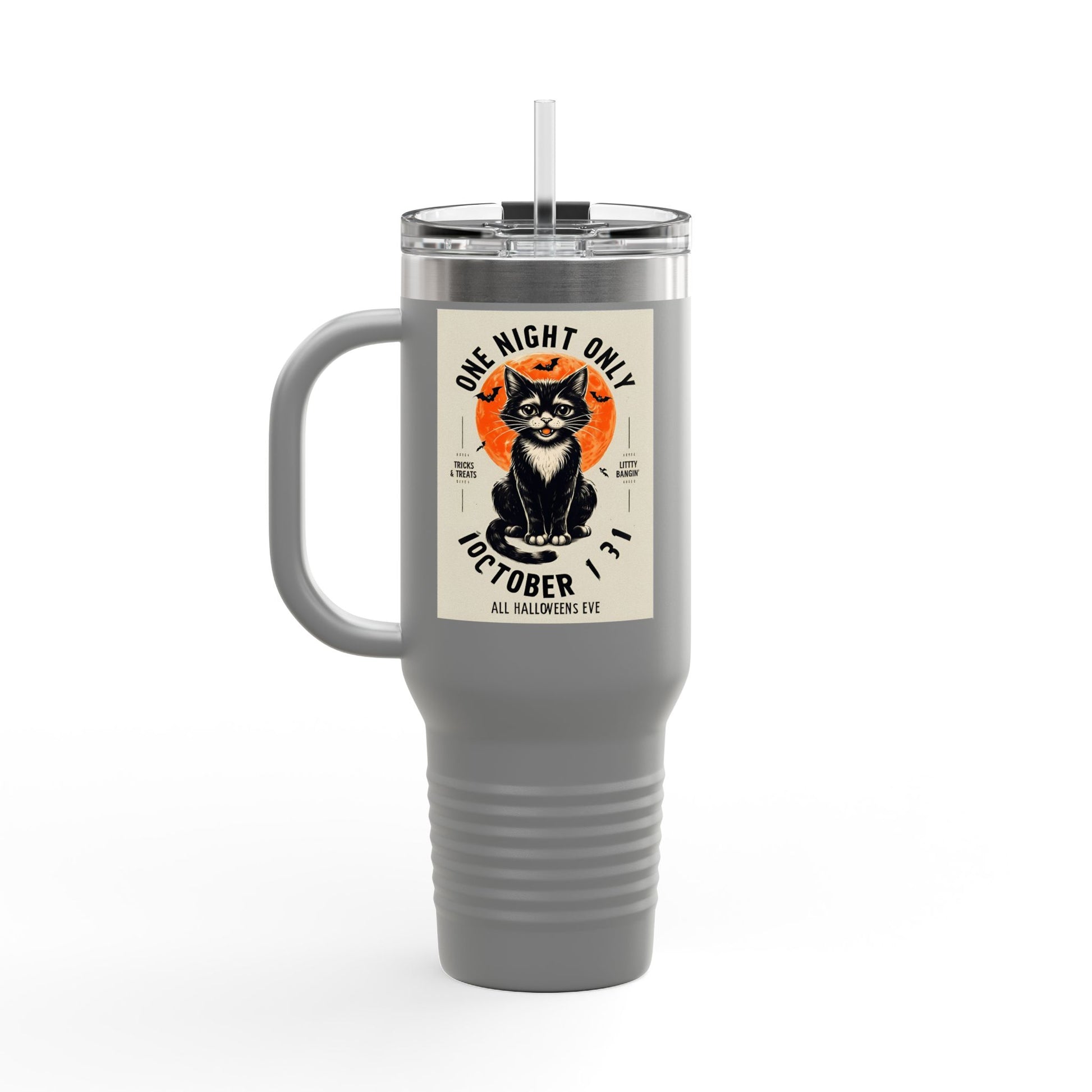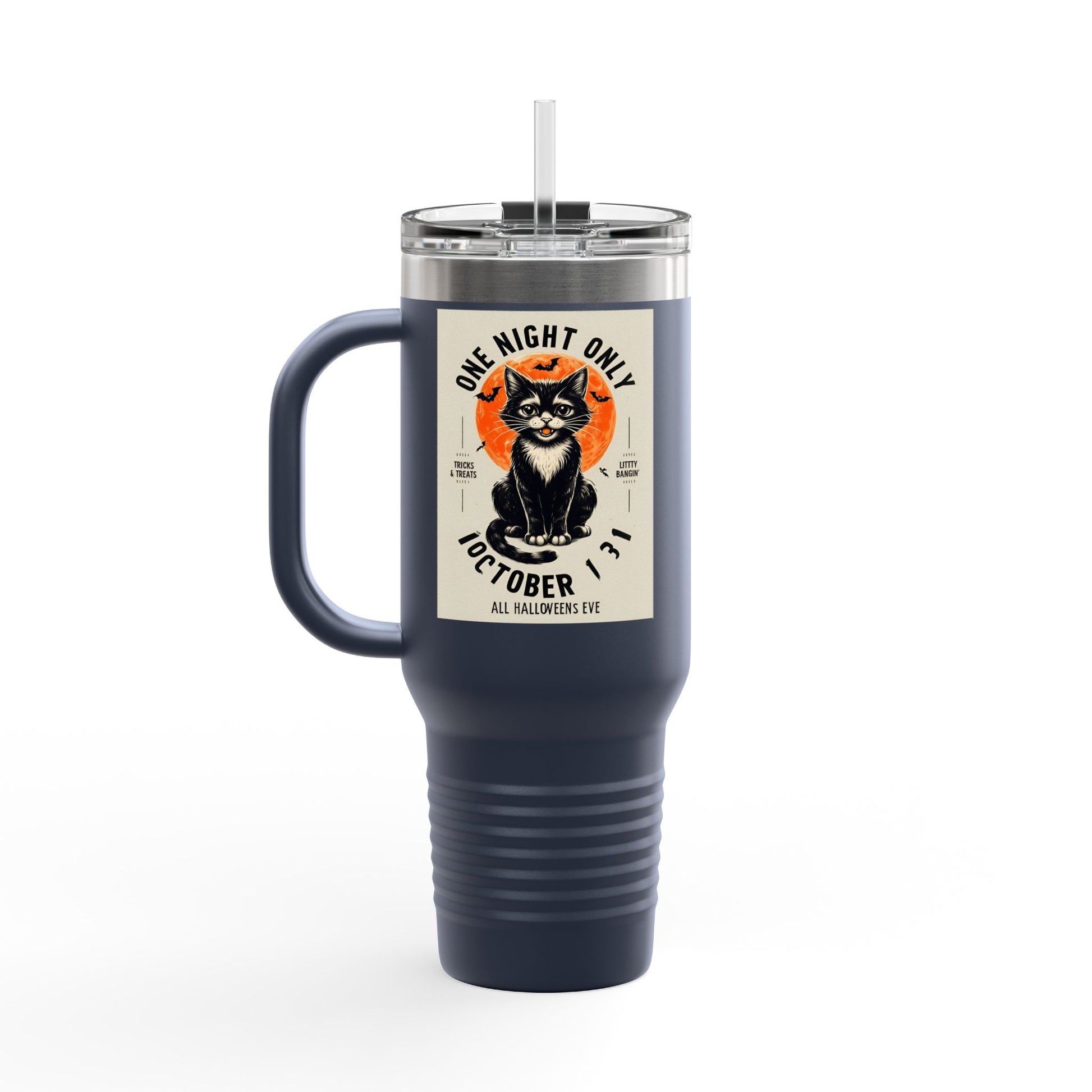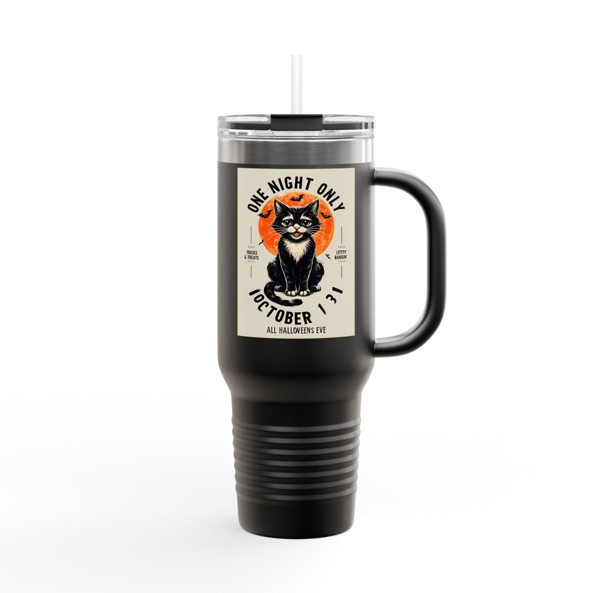 Halloween Black Cat Design | One Night Only October 31 Vintage Artwork Travel Mug
