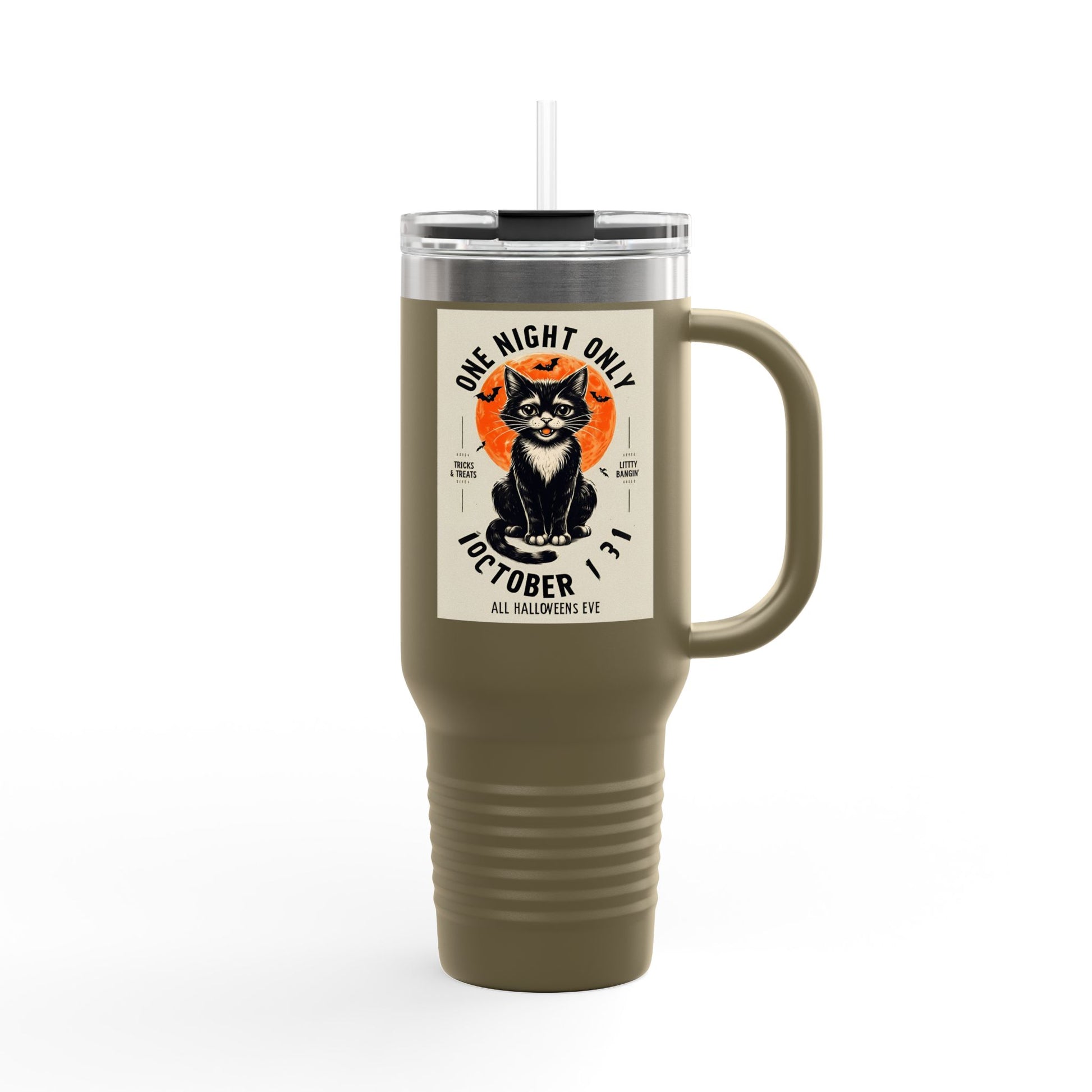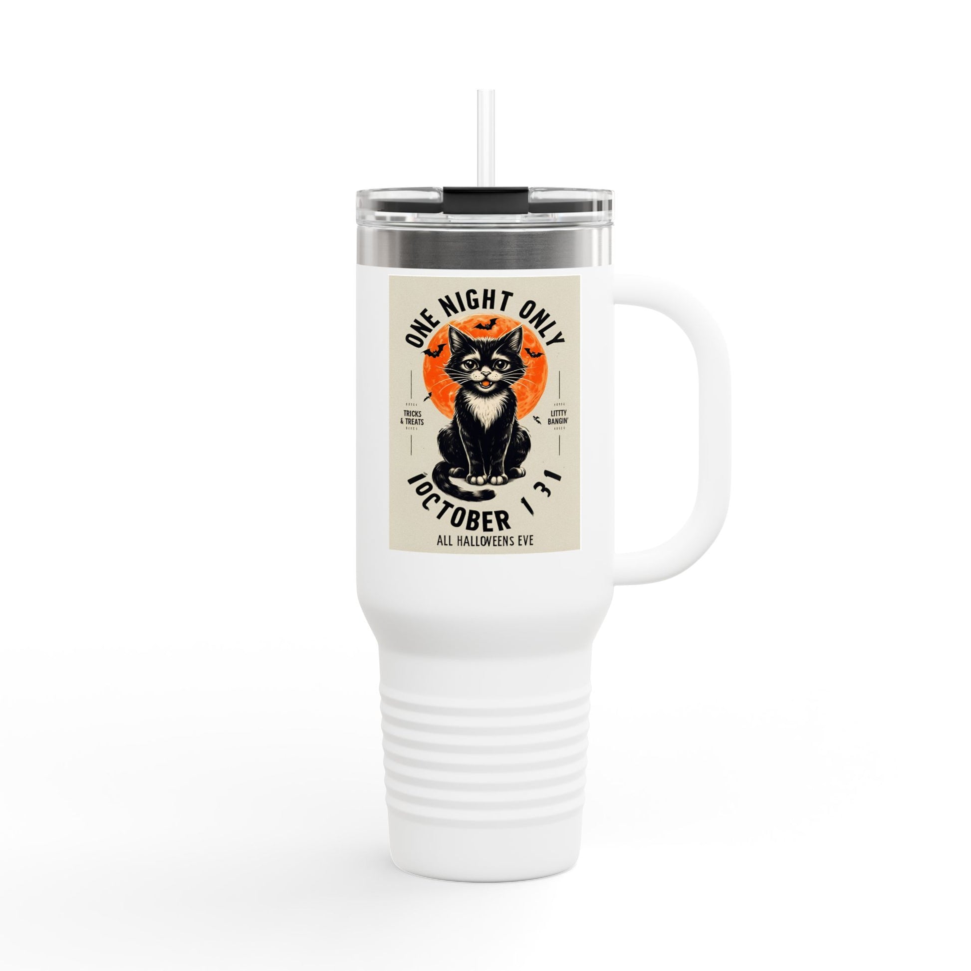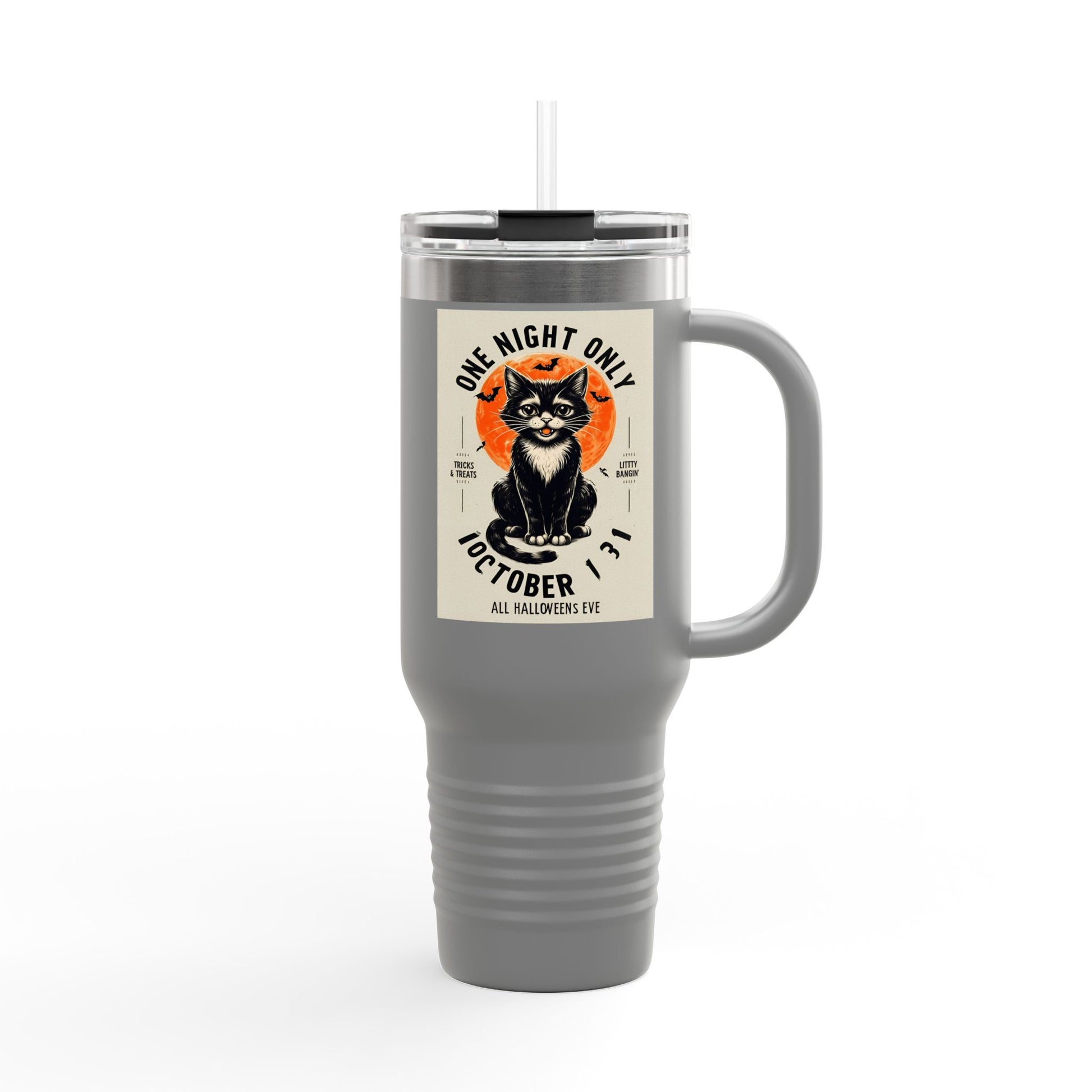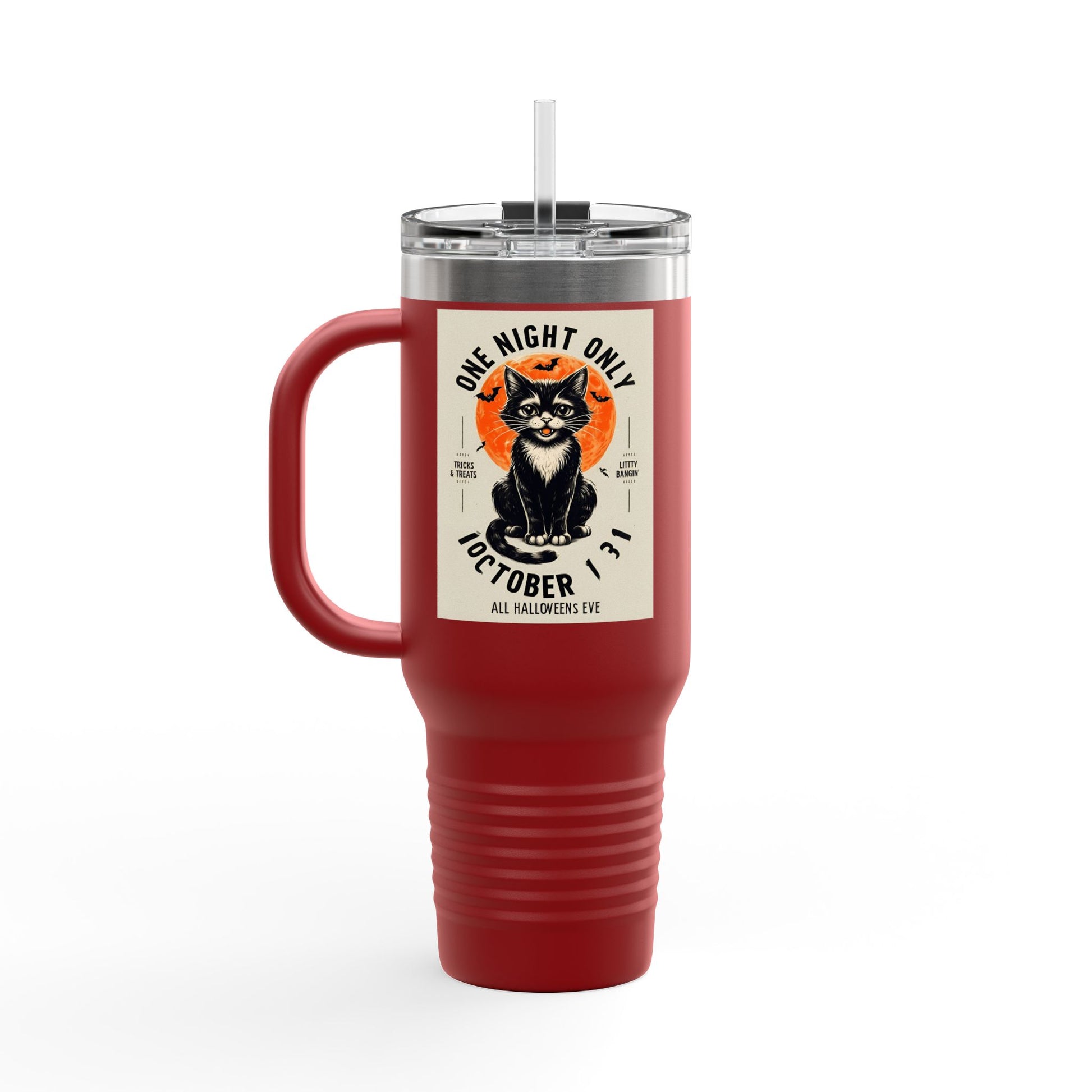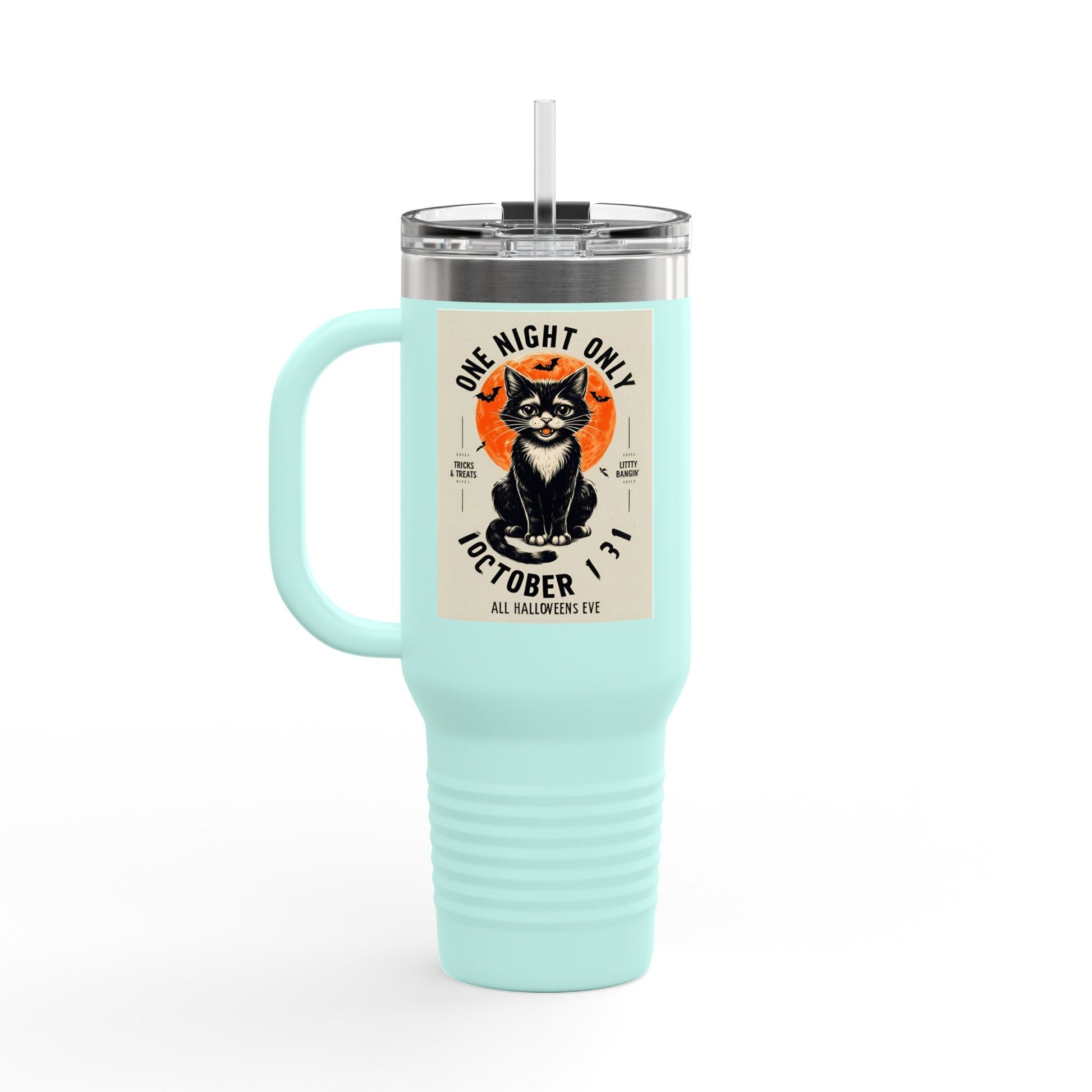 Halloween Black Cat Design | One Night Only October 31 Vintage Artwork Travel Mug