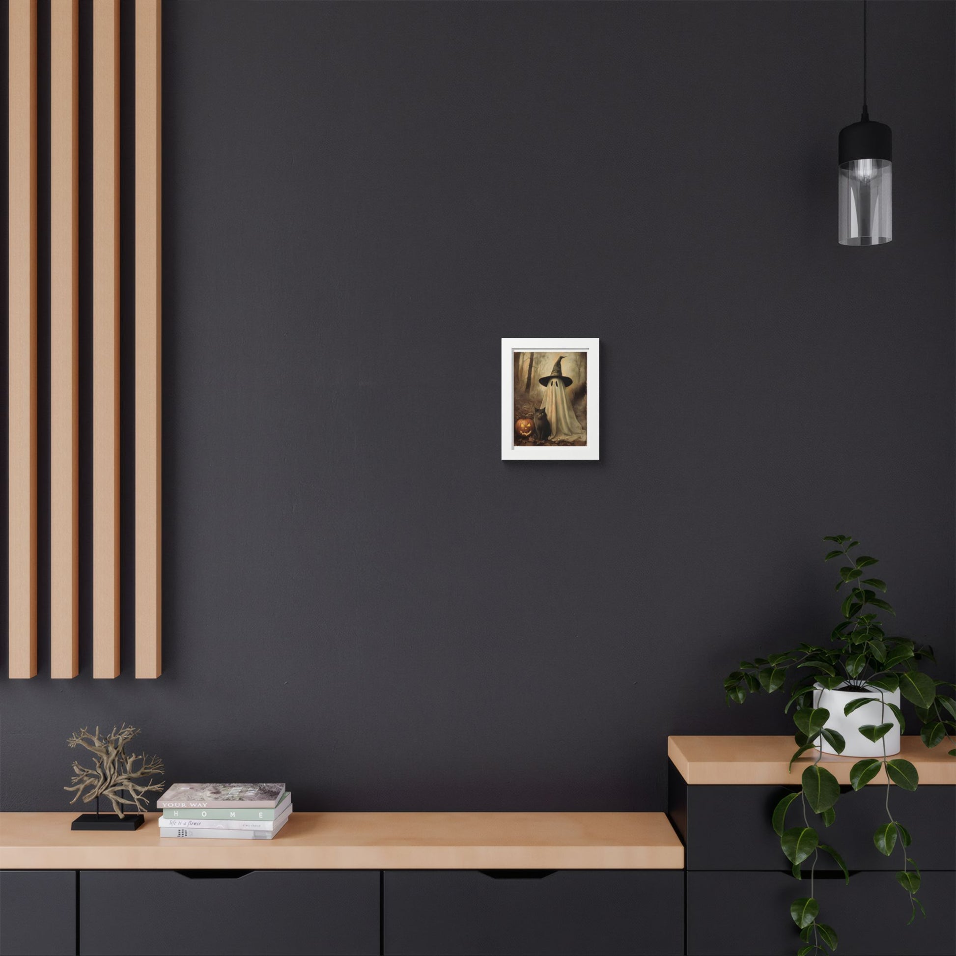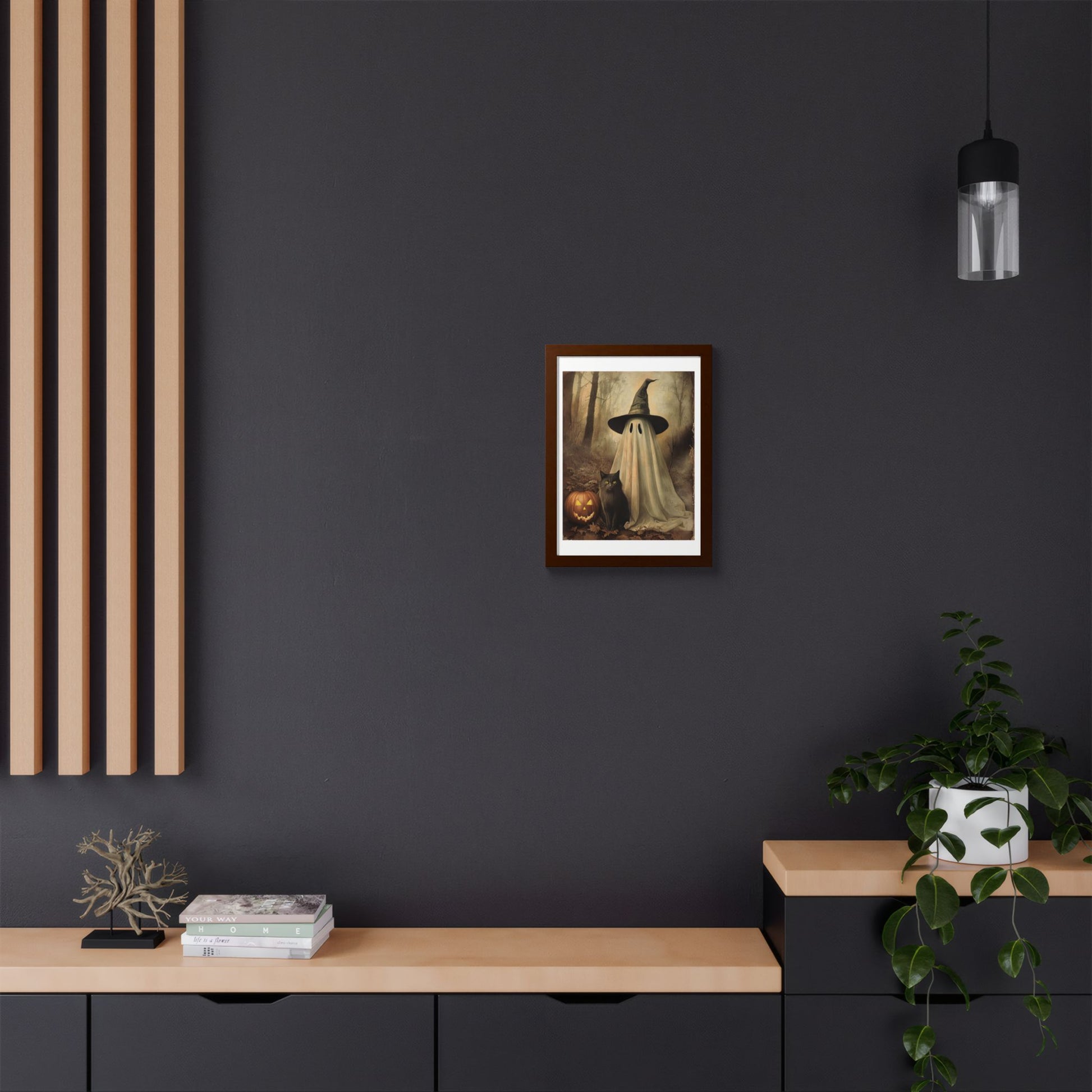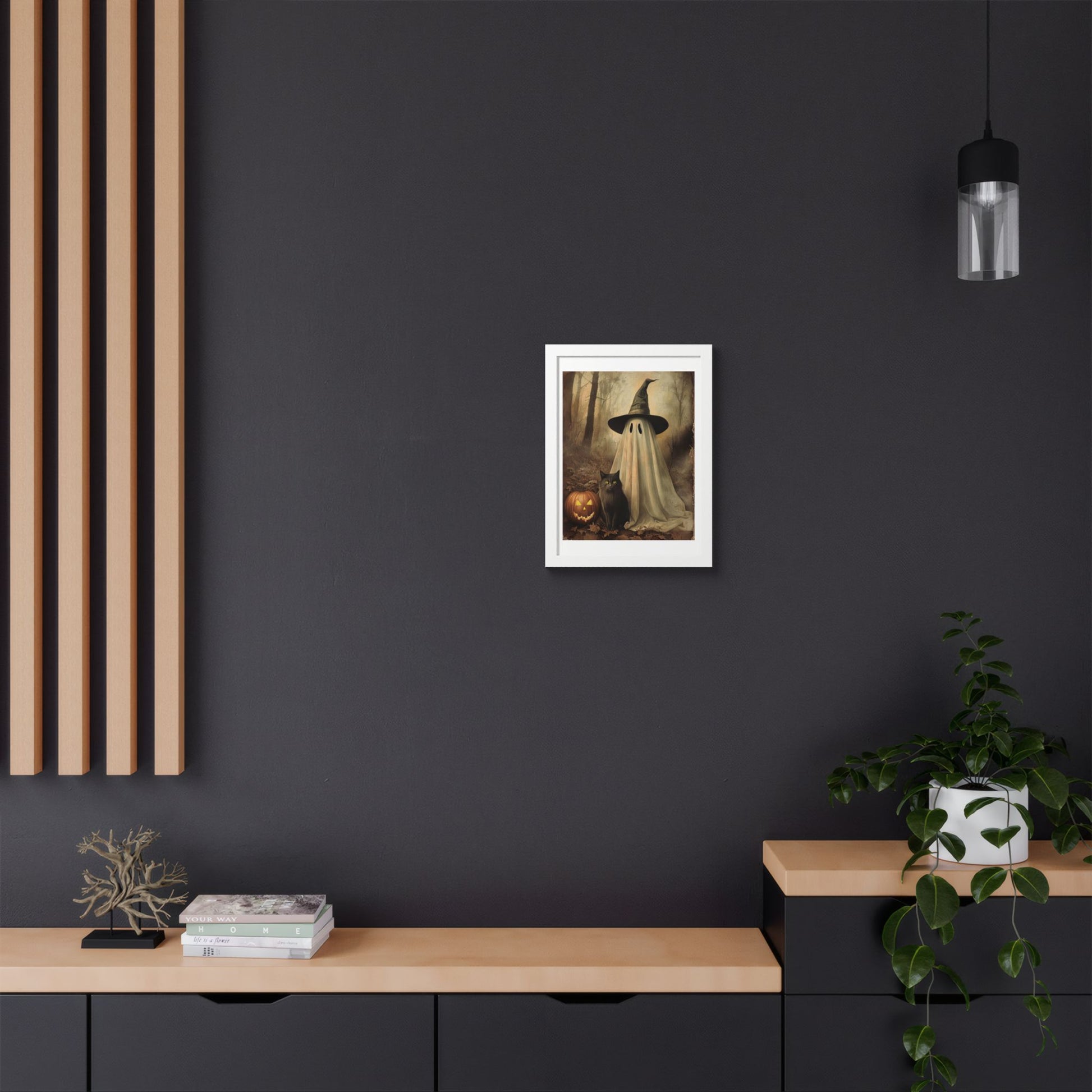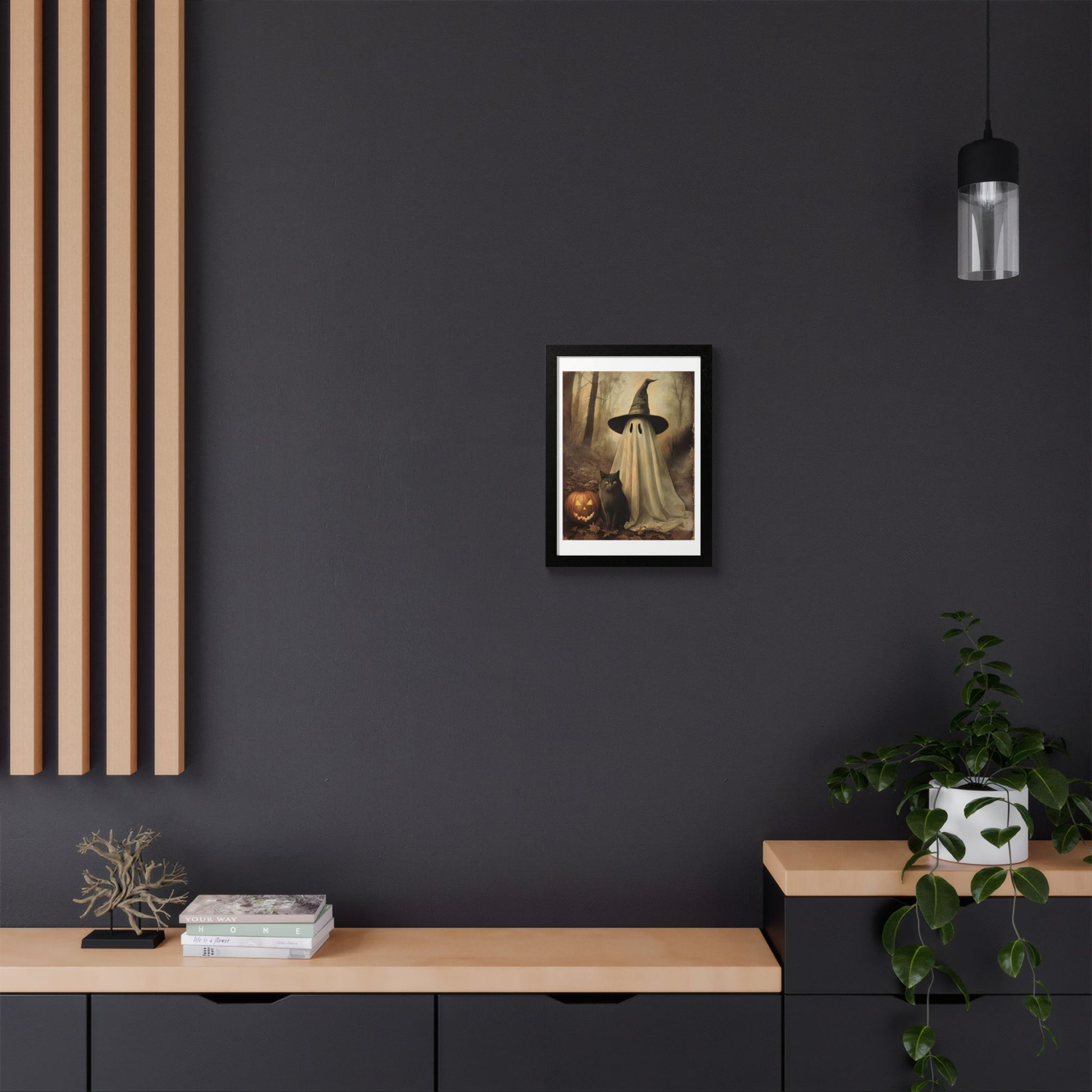 Halloween Framed Poster, Ghost and Cat Art, Spooky Home Decor, Fall Decoration, Trick or Treat, Halloween Wall Art, Framed Print