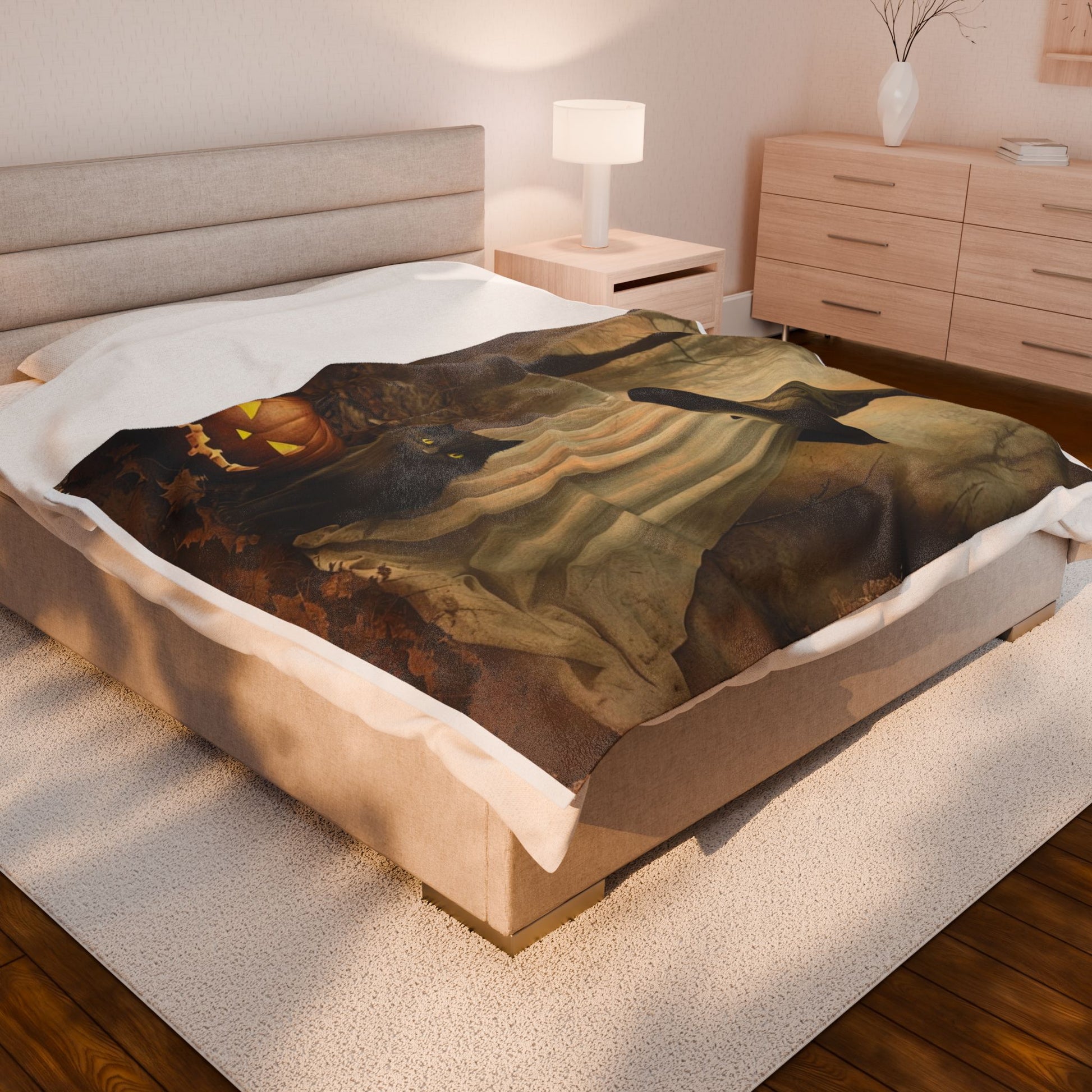 Halloween Ghost Plush Blanket for Cozy Nights, Fall Decor, Gift for Cat Lovers, Pumpkin Design, Cozy Home Accessory, Blanket