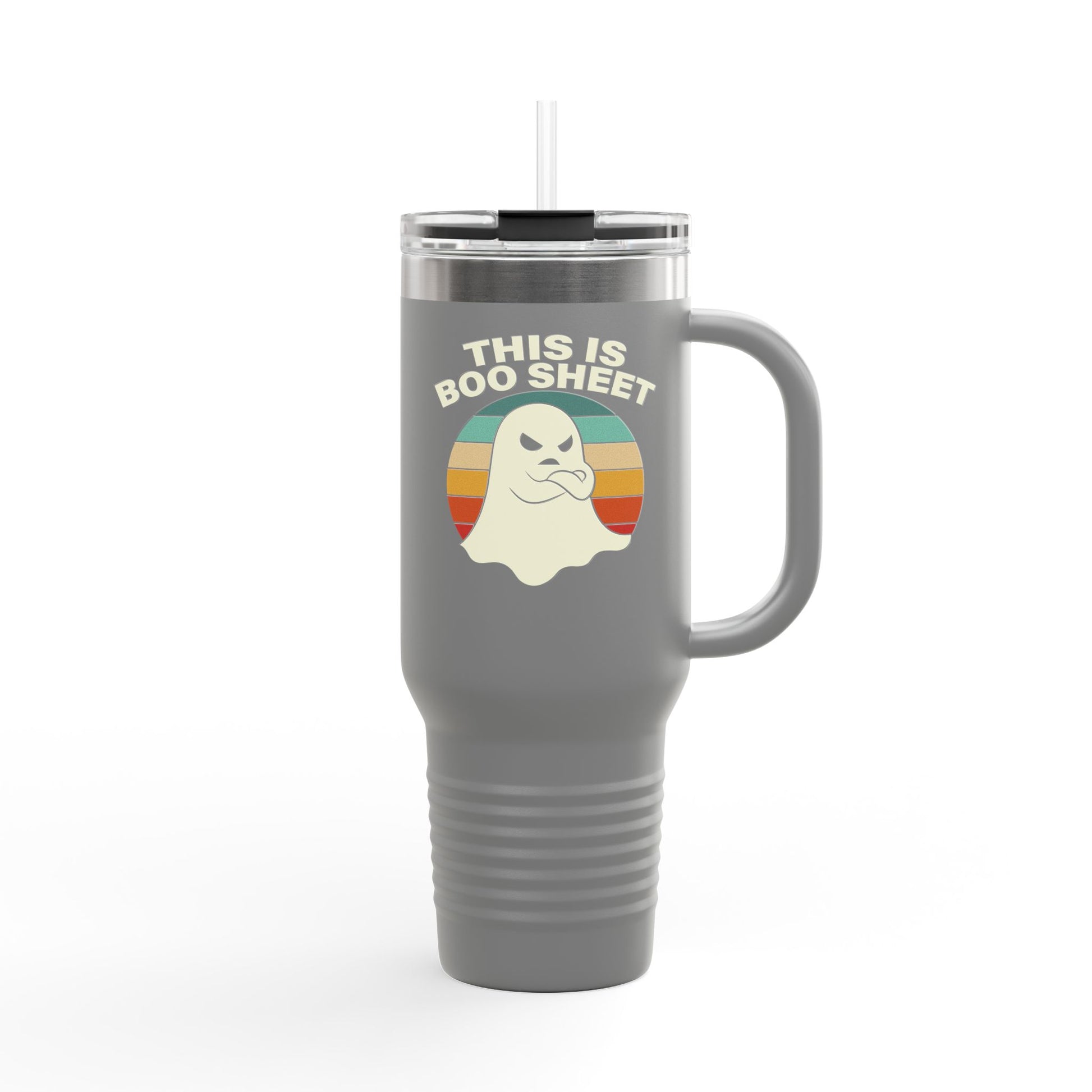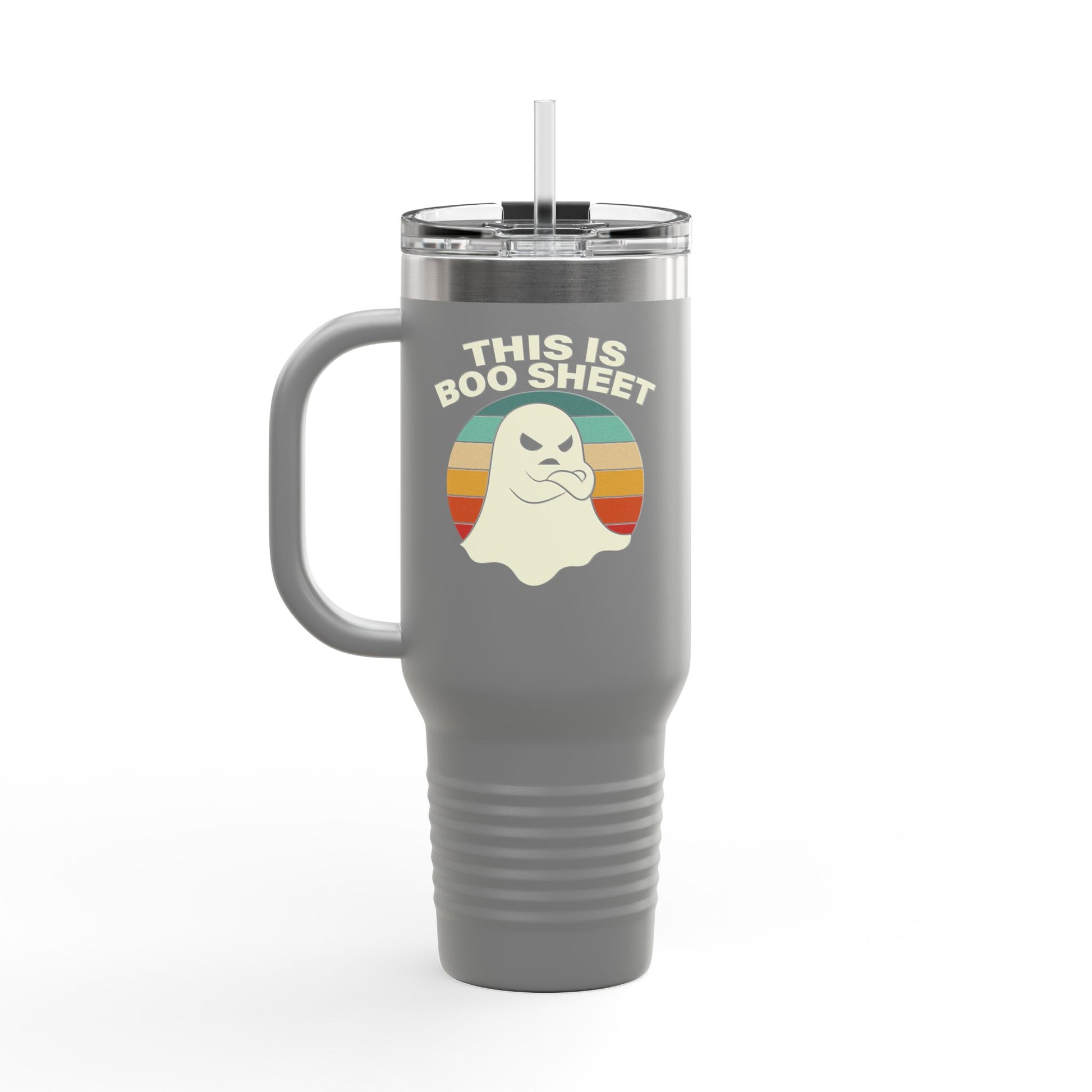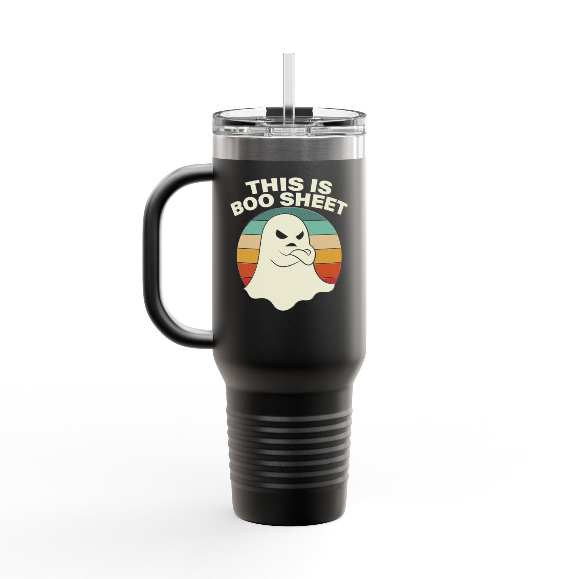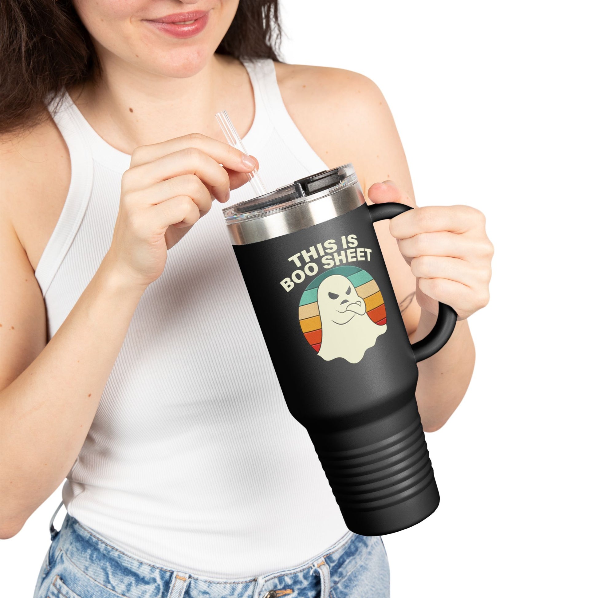 This Is Boo Sheet Funny Halloween | Sarcastic Ghost Shirt for Spooky Season | Retro Ghost Graphic Tee for Men & Women Travel Mug