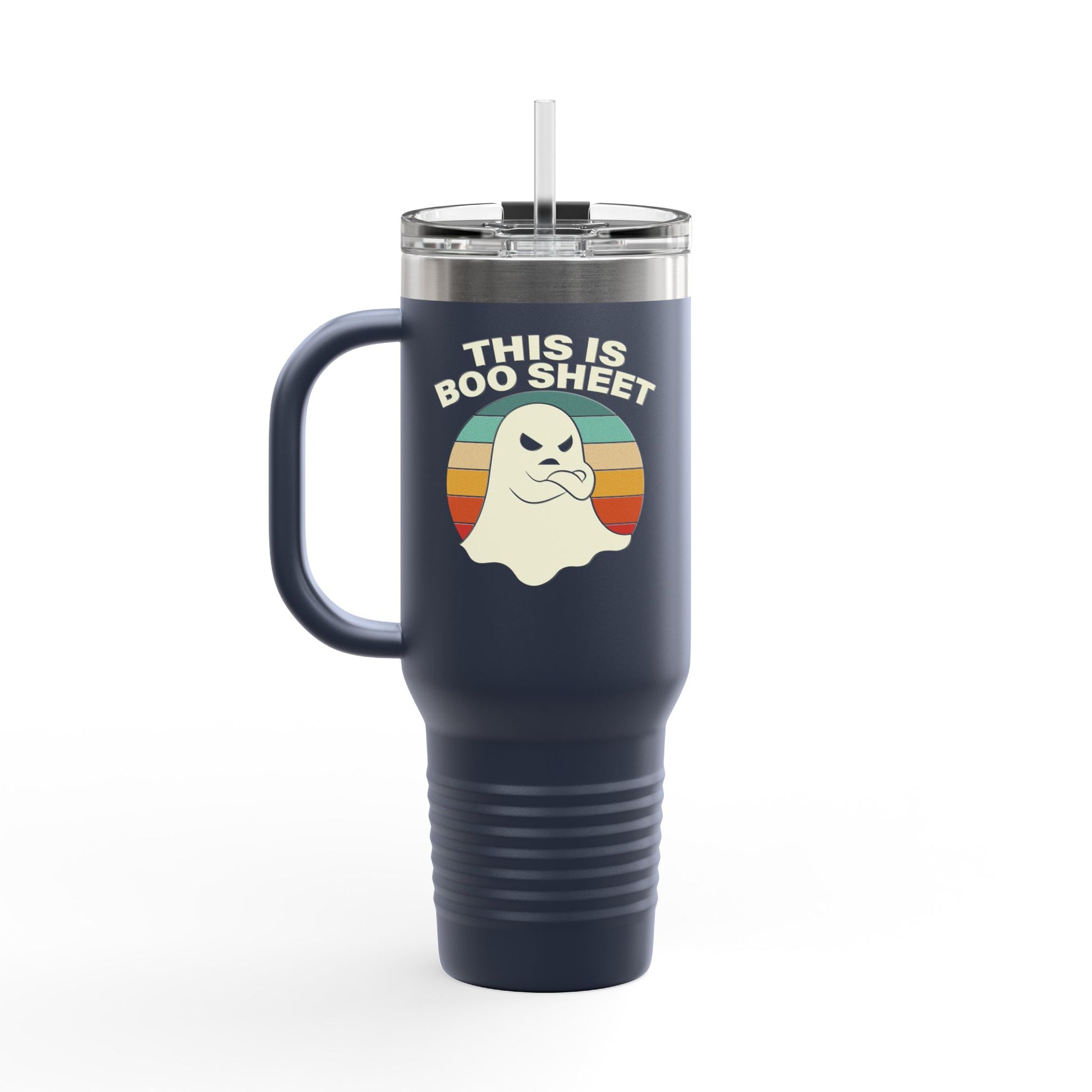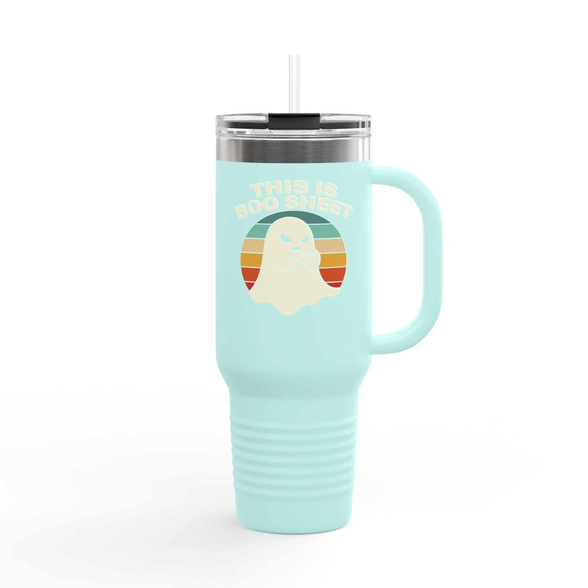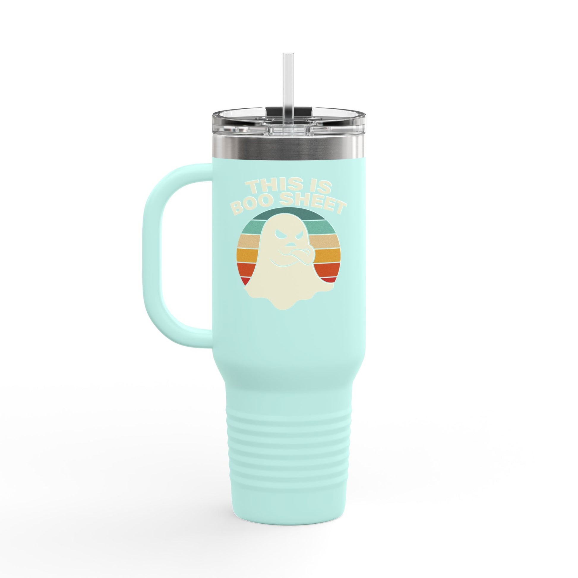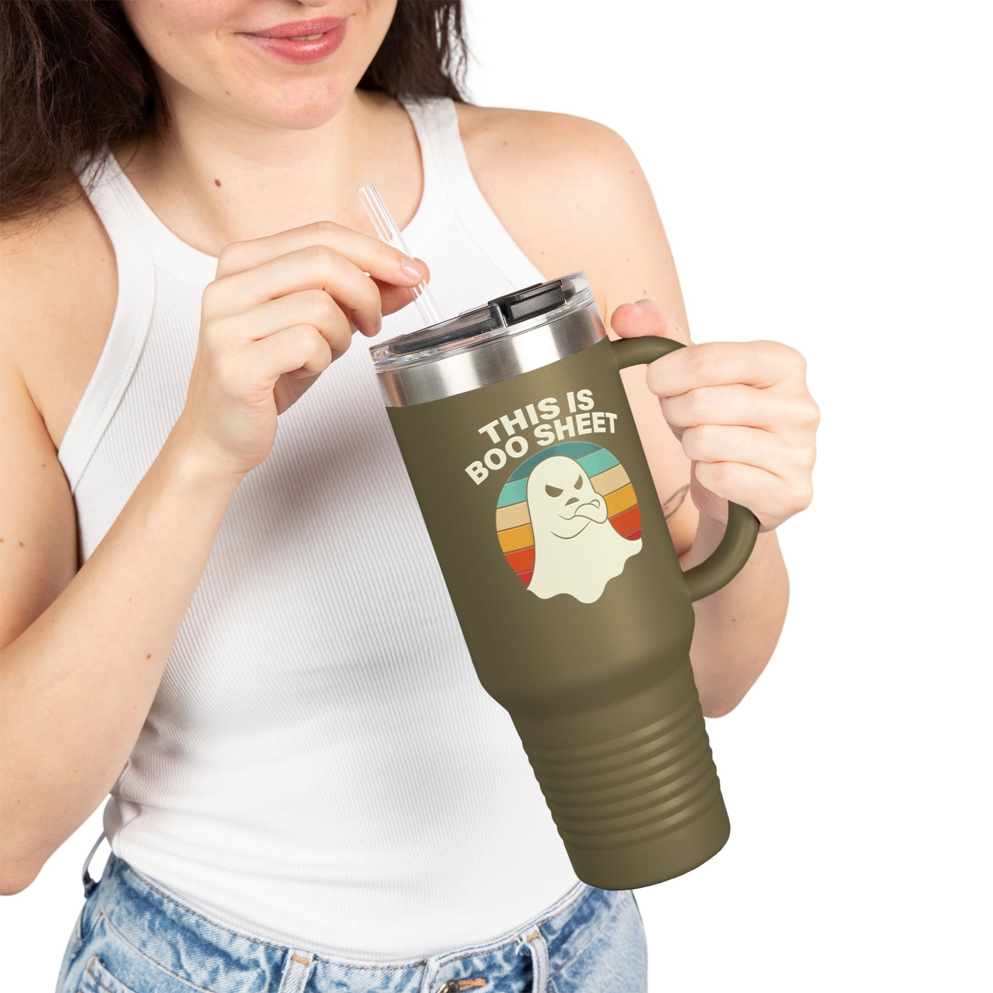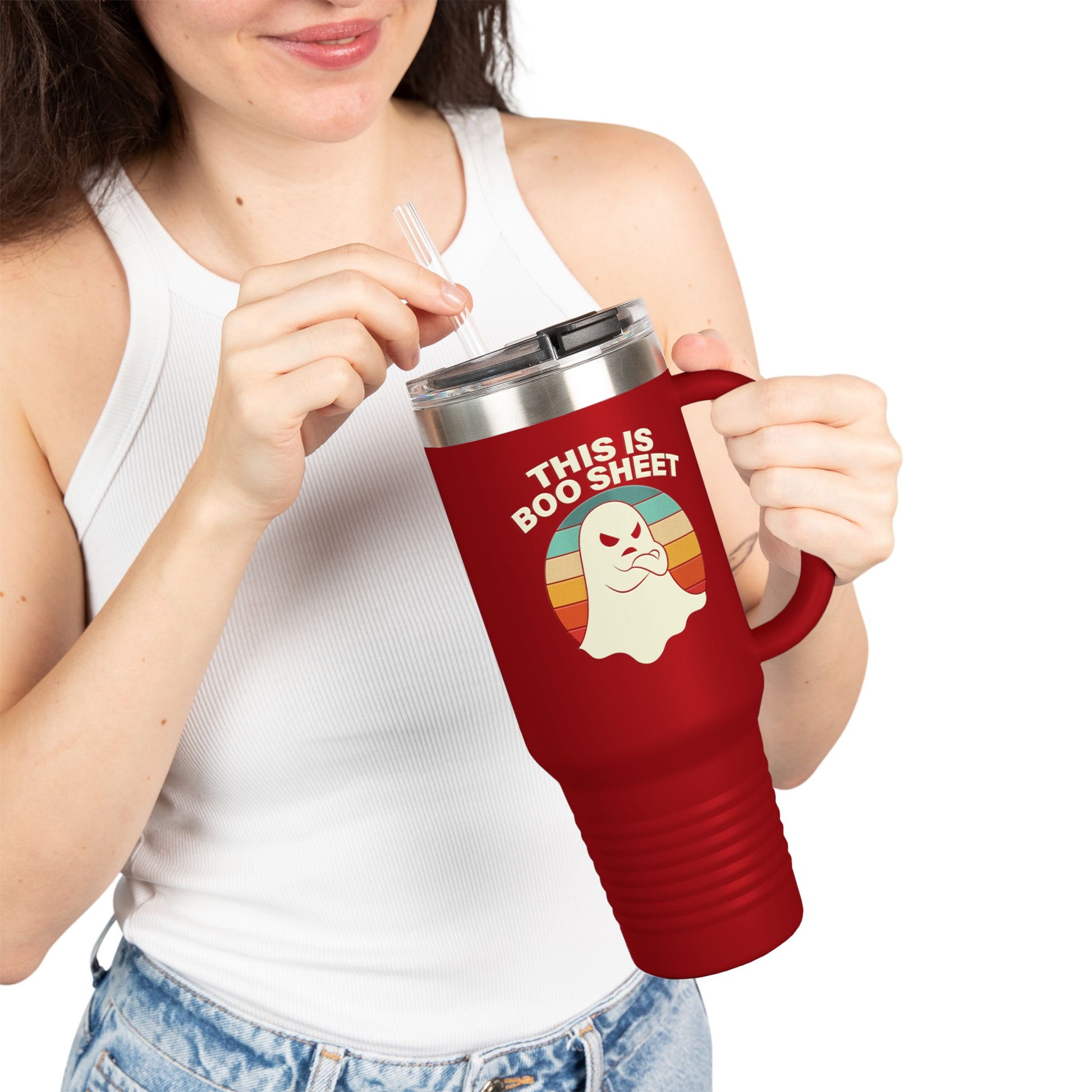 This Is Boo Sheet Funny Halloween | Sarcastic Ghost Shirt for Spooky Season | Retro Ghost Graphic Tee for Men & Women Travel Mug