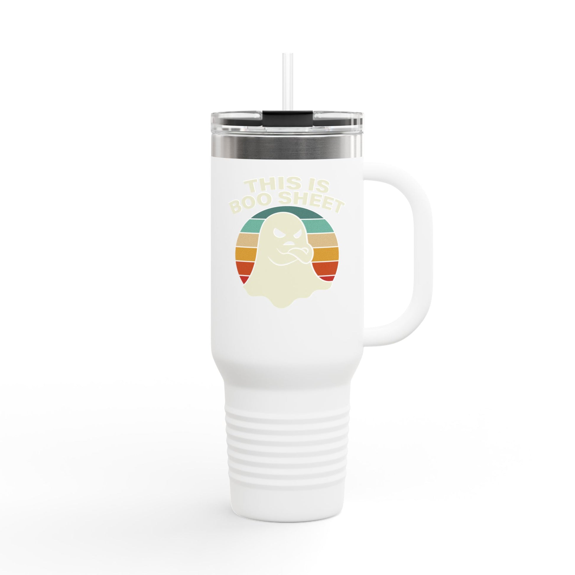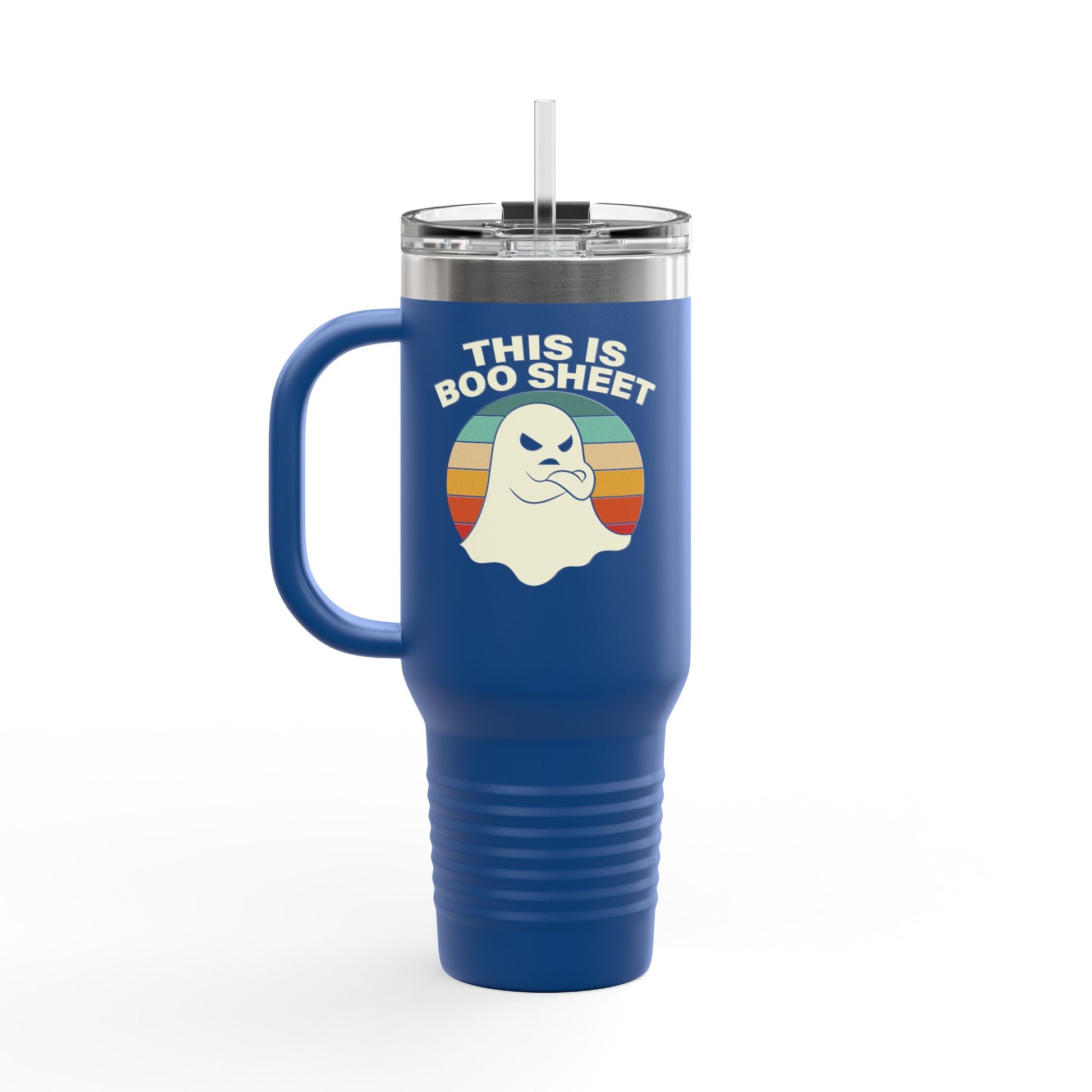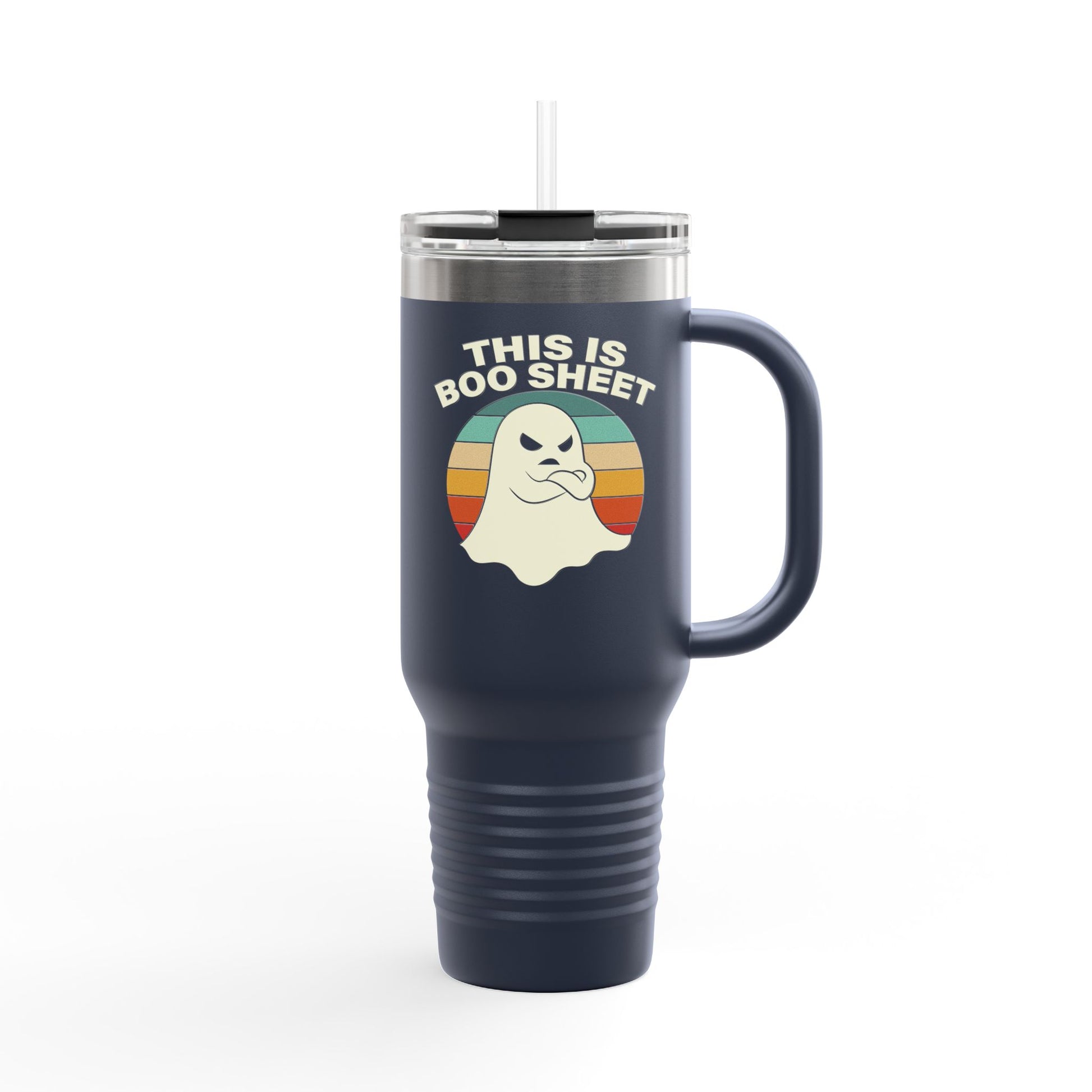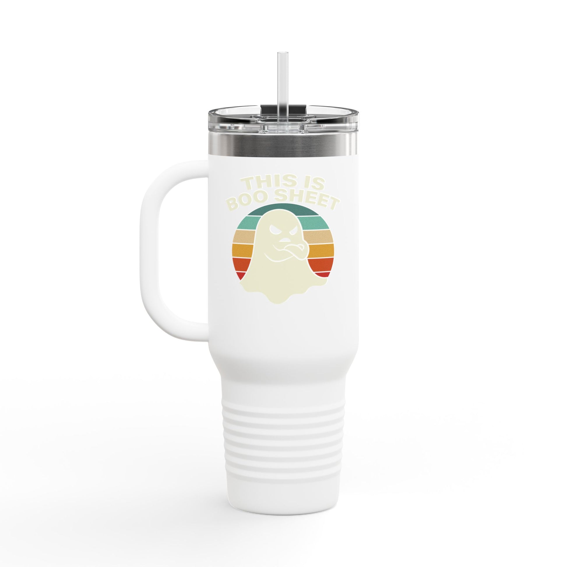 This Is Boo Sheet Funny Halloween | Sarcastic Ghost Shirt for Spooky Season | Retro Ghost Graphic Tee for Men & Women Travel Mug