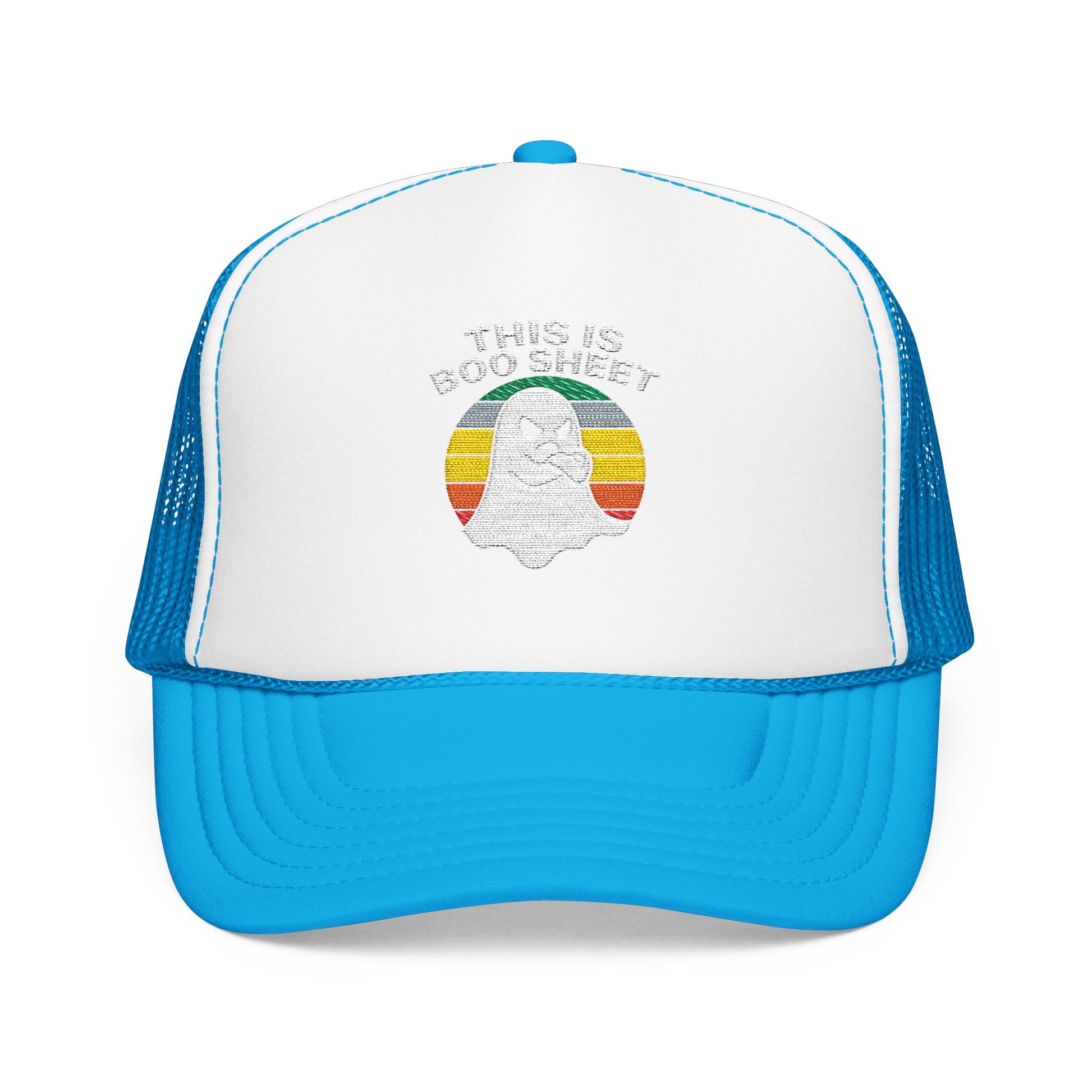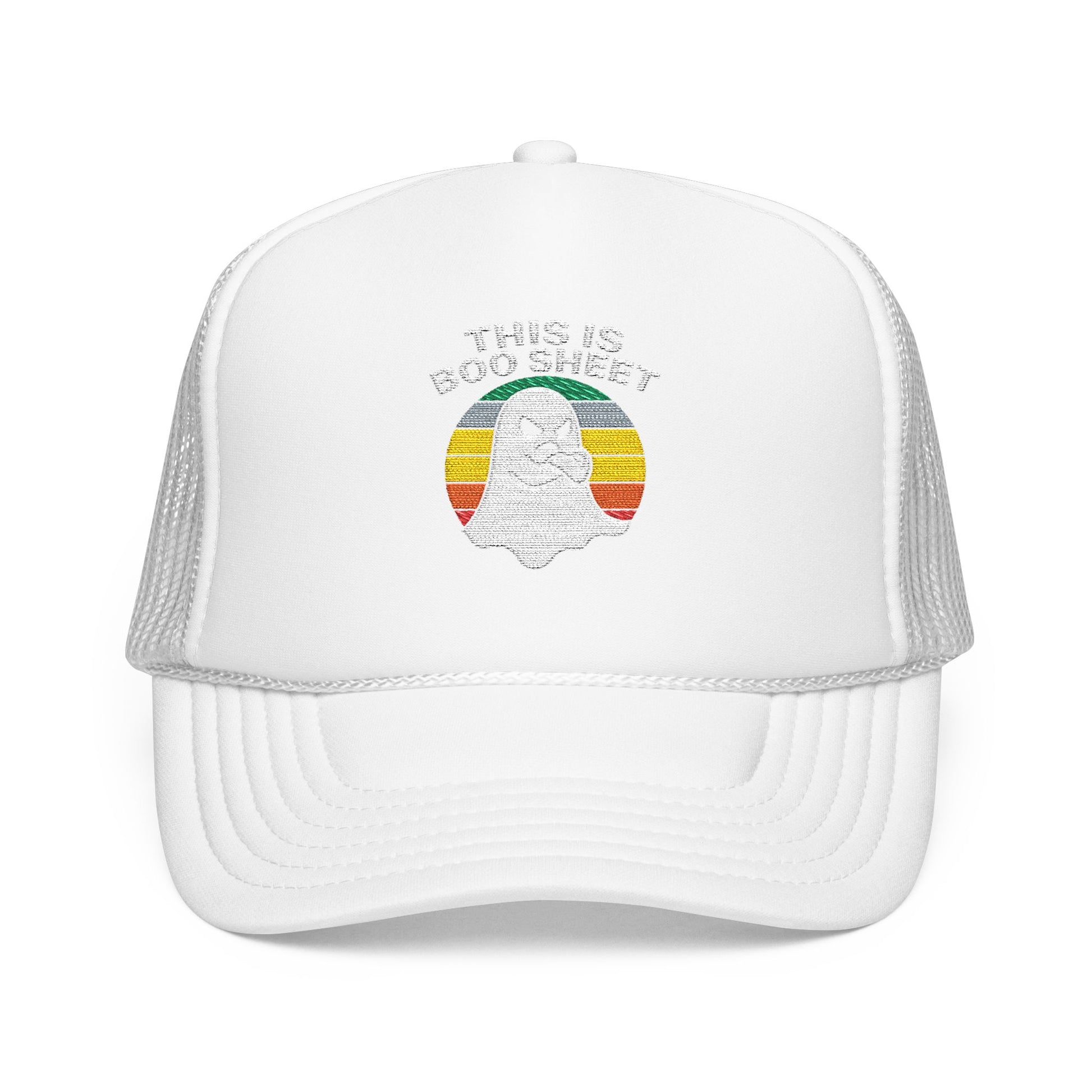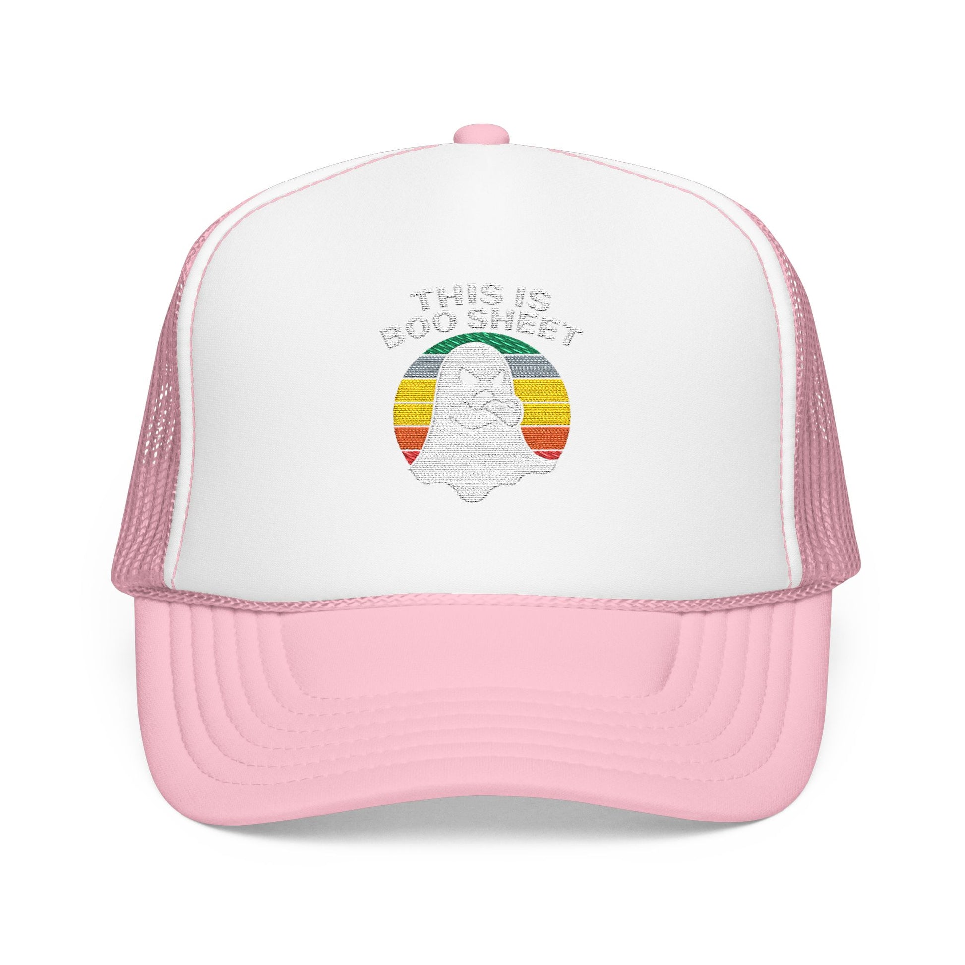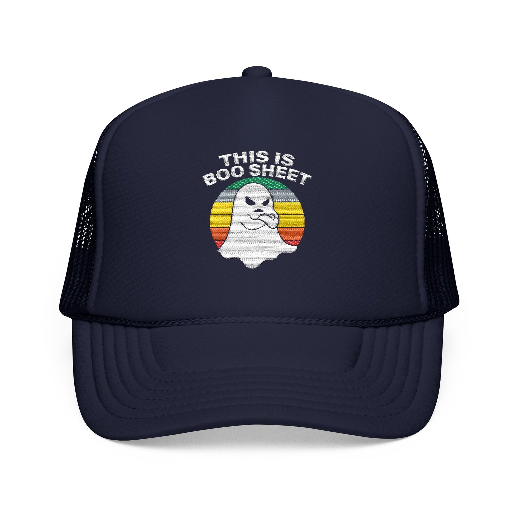This Is Boo Sheet Funny Halloween T‑Shirt | Sarcastic Ghost Shirt for Spooky Season | Retro Ghost Graphic Tee for Men & Women Trucker Hat Embroidered