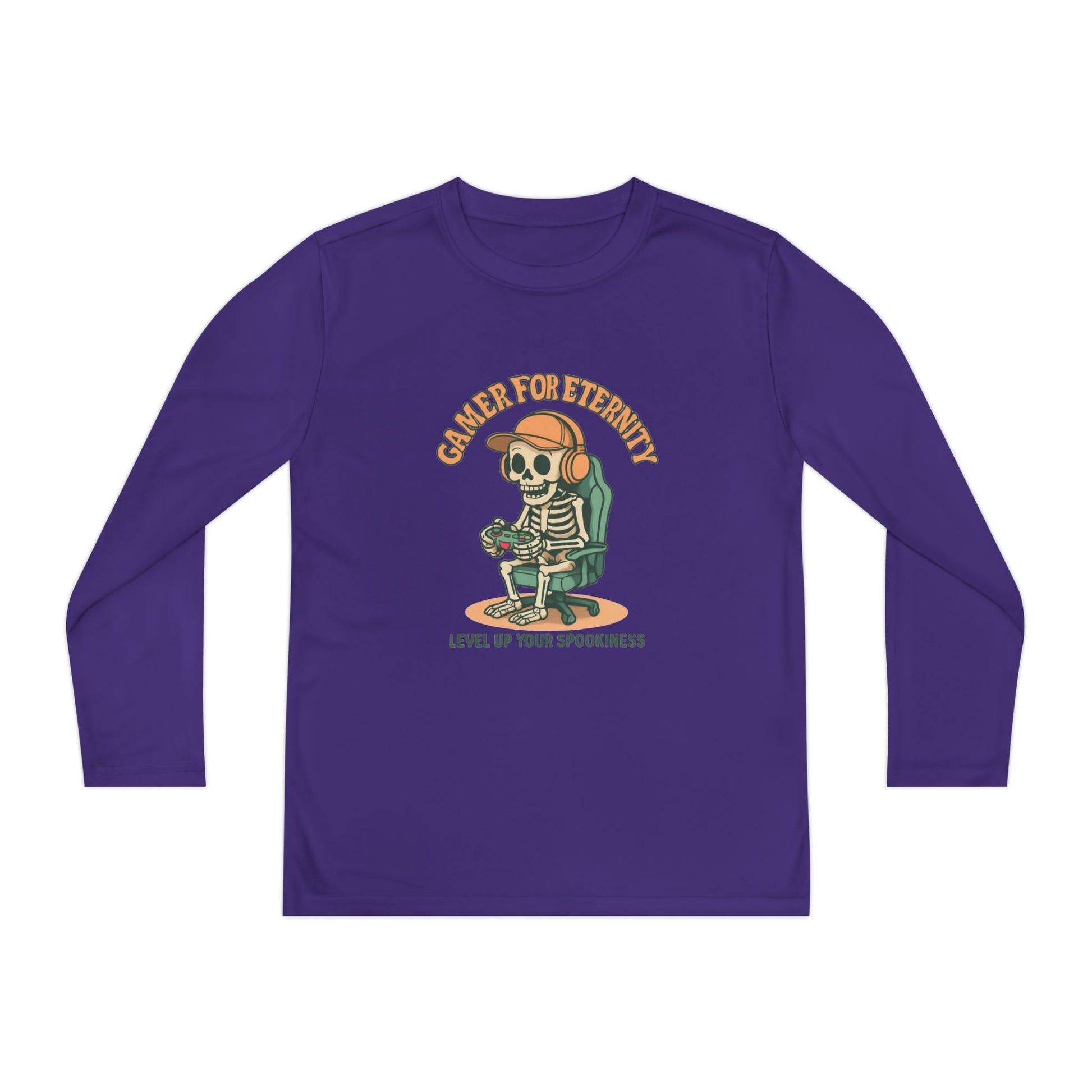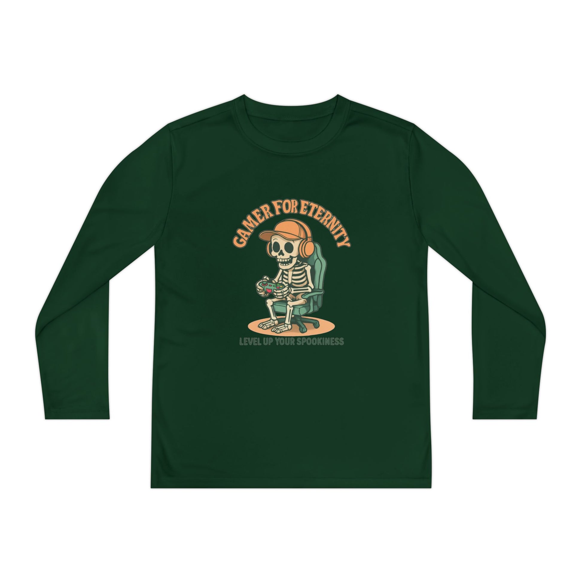 Youth Long Sleeve Gamer Tee | Spooky Skeleton Theme, Perfect for Halloween or Gaming Events, Kids Graphic Shirt, Unisex Casual Wear, Kids Long Sleeves